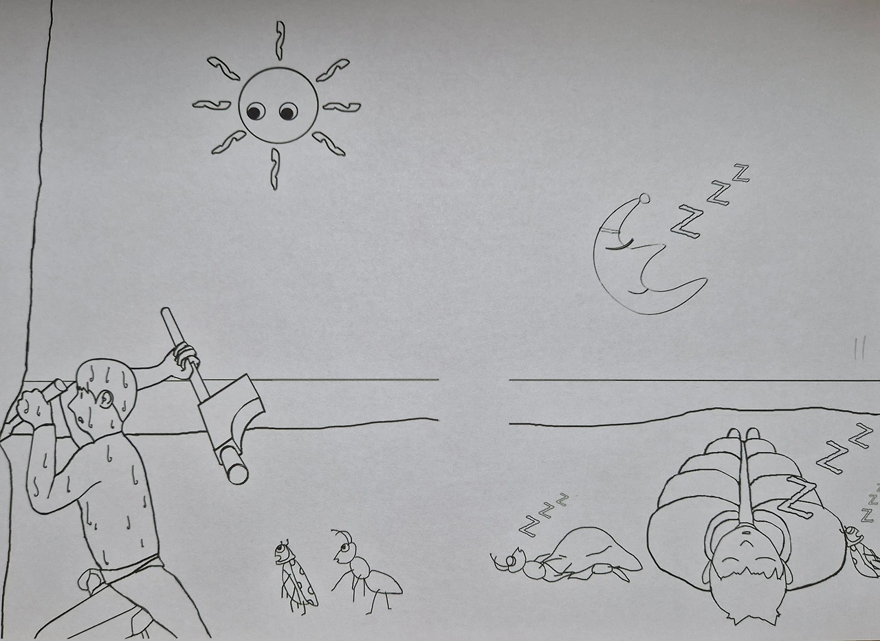 <이상한 가게> 주인은 망치를 내려 놓고 바닥에 누웠어요.