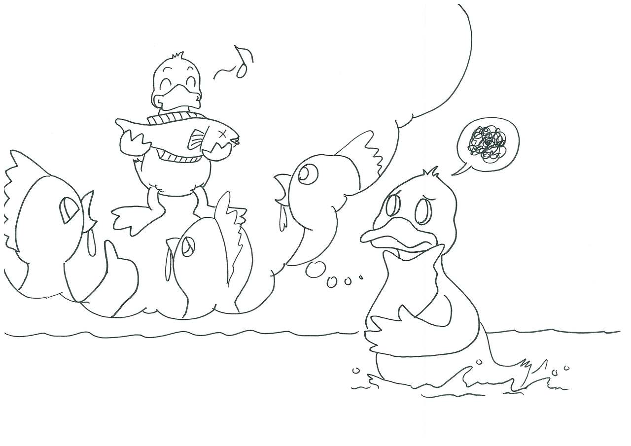 닭들은 물고기 요리 식당에 온 것 같았어요.