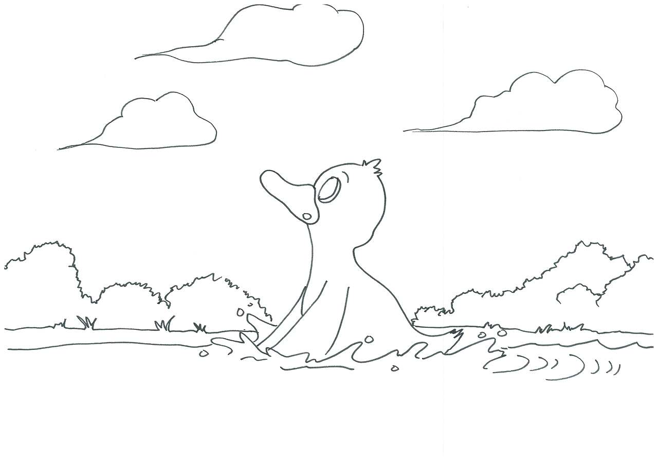 오리는 물고기도 잡지 않고 호수에 앉아 생각했어요.