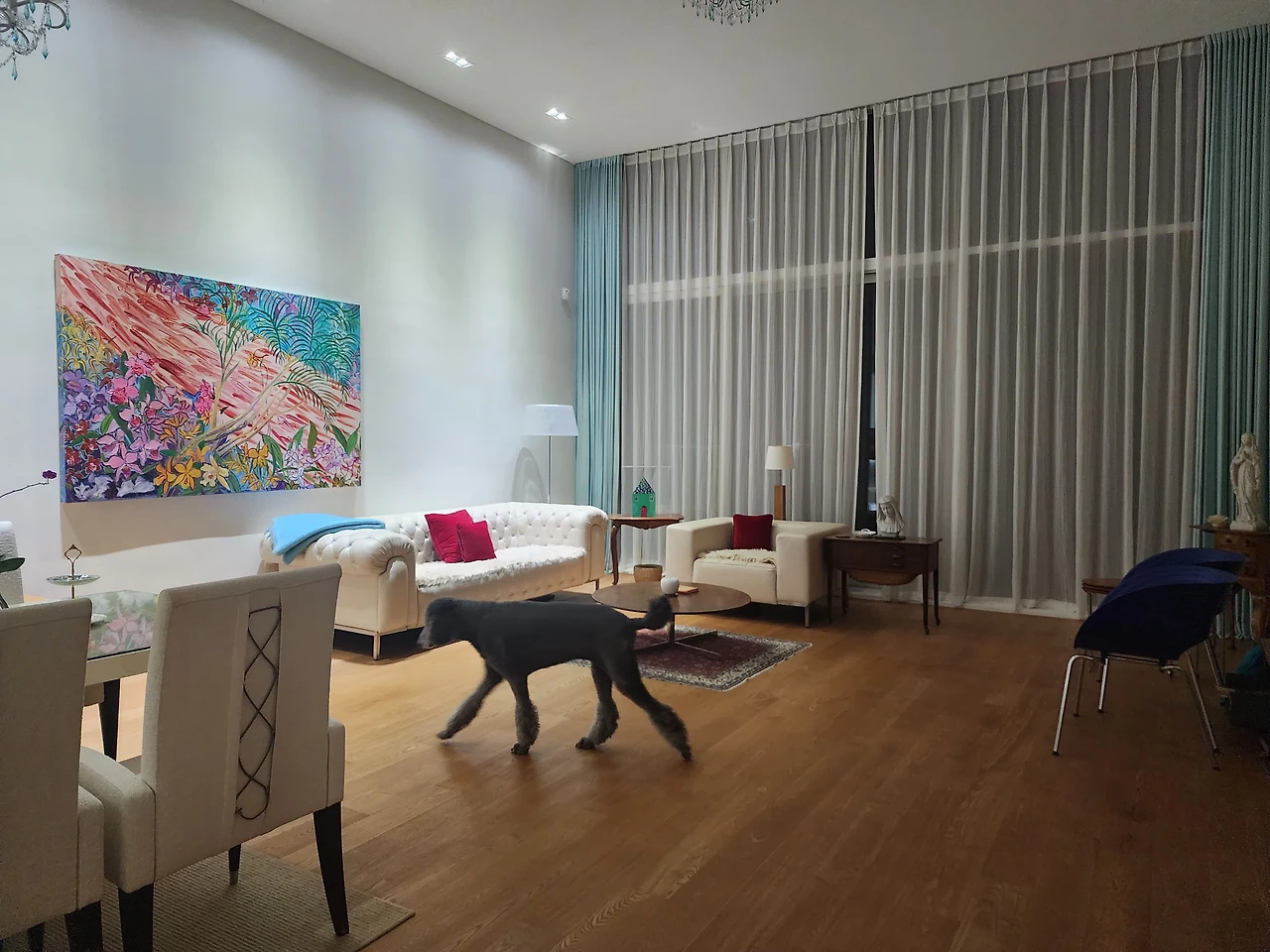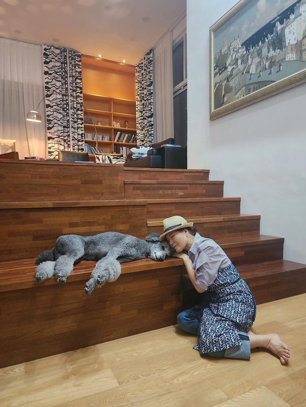 명작 속으로 들어갔다 명작을 뚫고 나온 강아지.