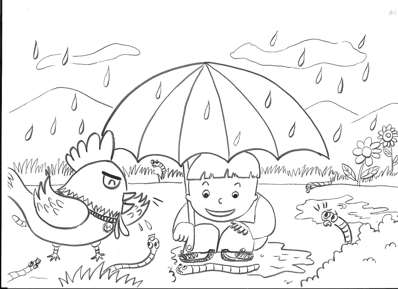 동수는 우산 쓰고 논두렁을 걸었어요.