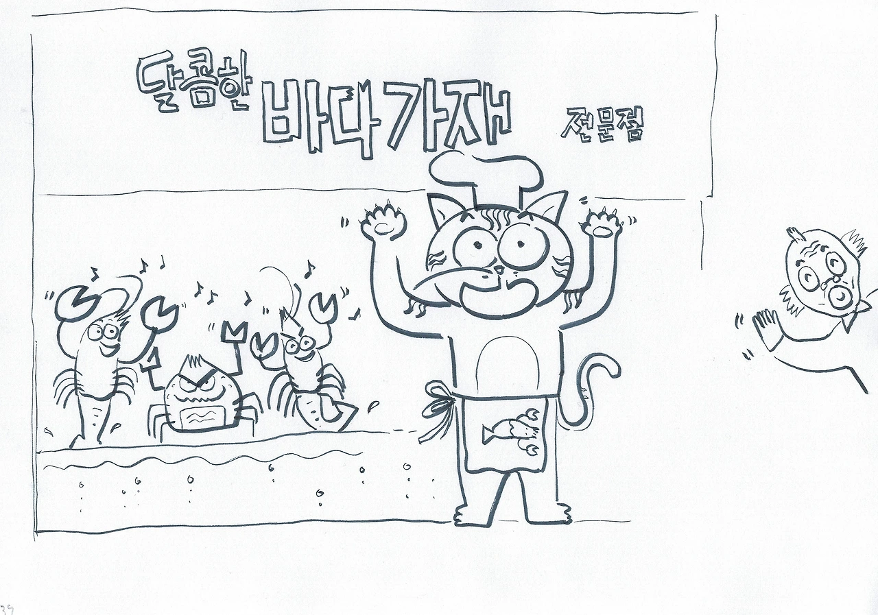 <달콤한 바닷가재 전문점>은 고양이 <샘>이 운영하는 가게였어요.