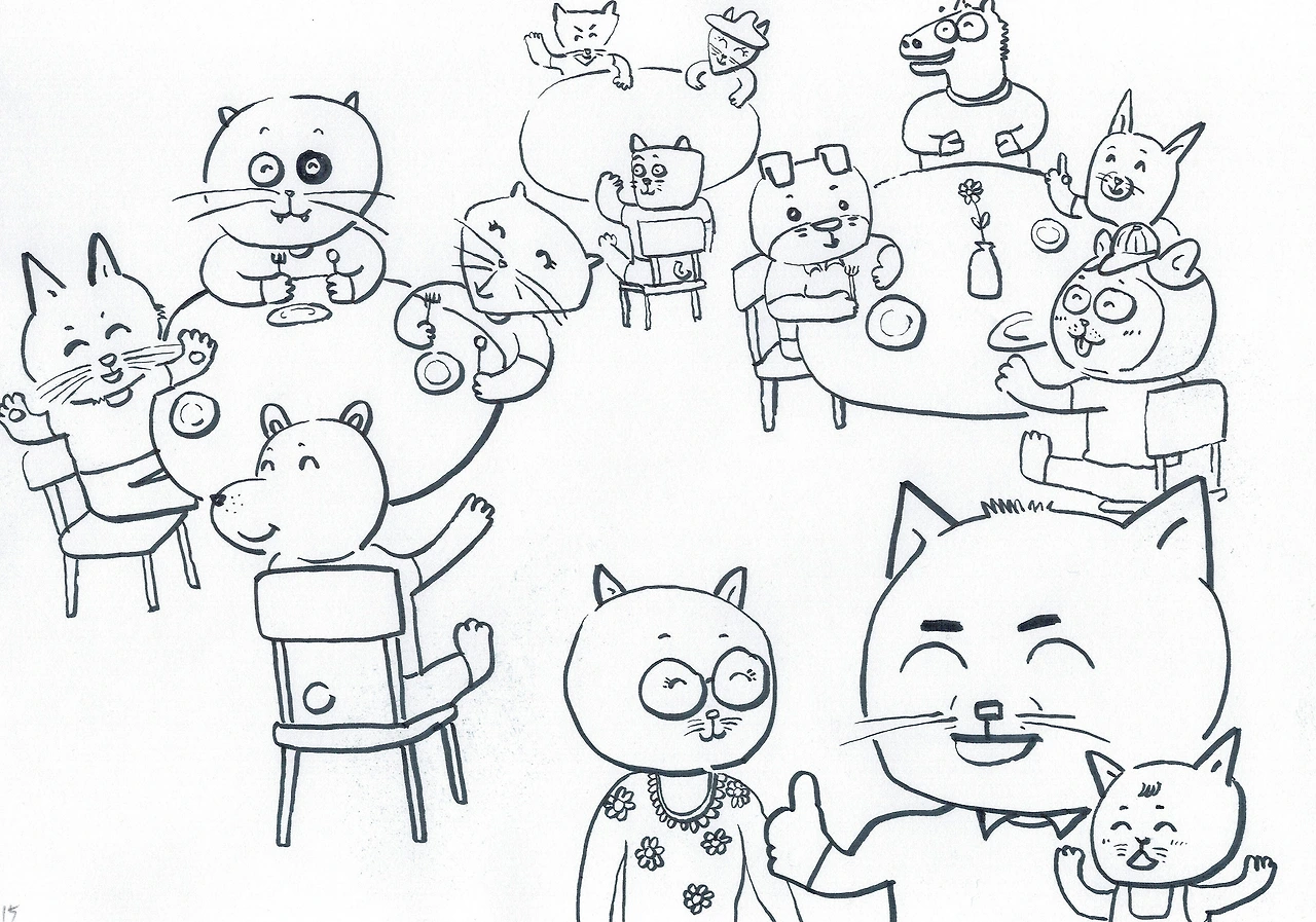 어린 고양이들은 달콤한 향기를 맡으며 의자를 당겼어요.