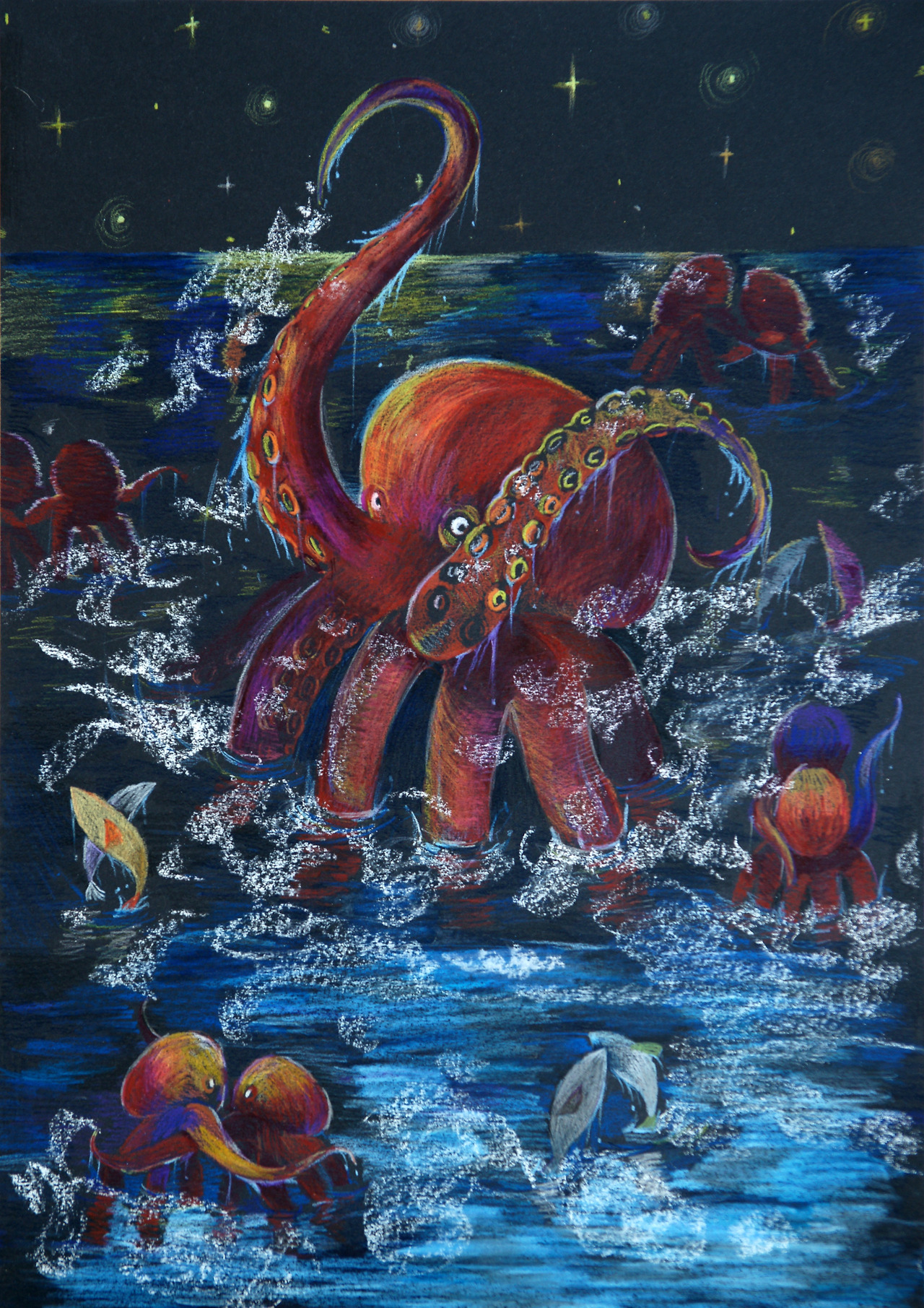 문어들은 태풍이 불어오면 더 정성을 다해 춤을 췄다.