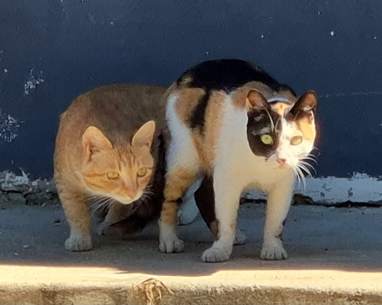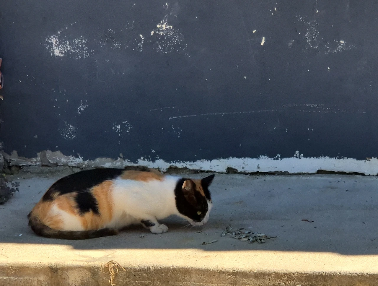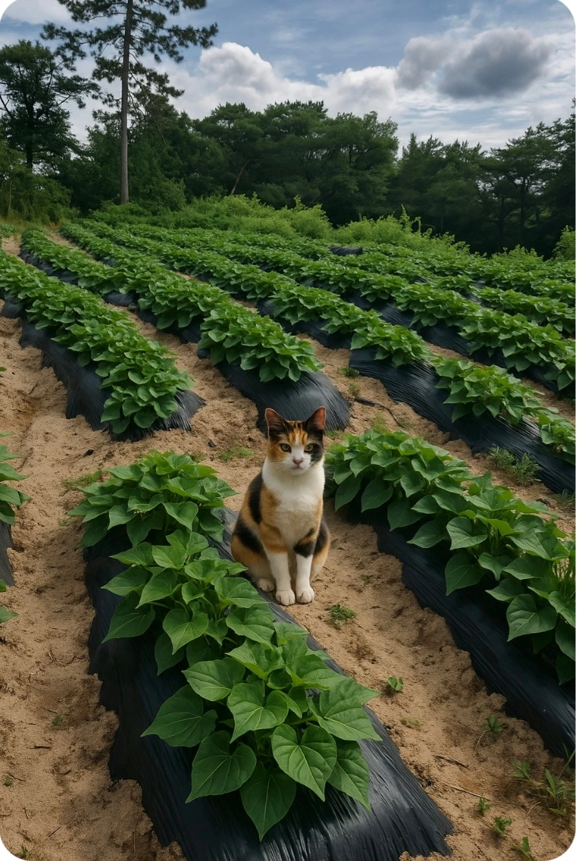 아침마다 고구마밭에 가면 고양이와 놀아주었어요.