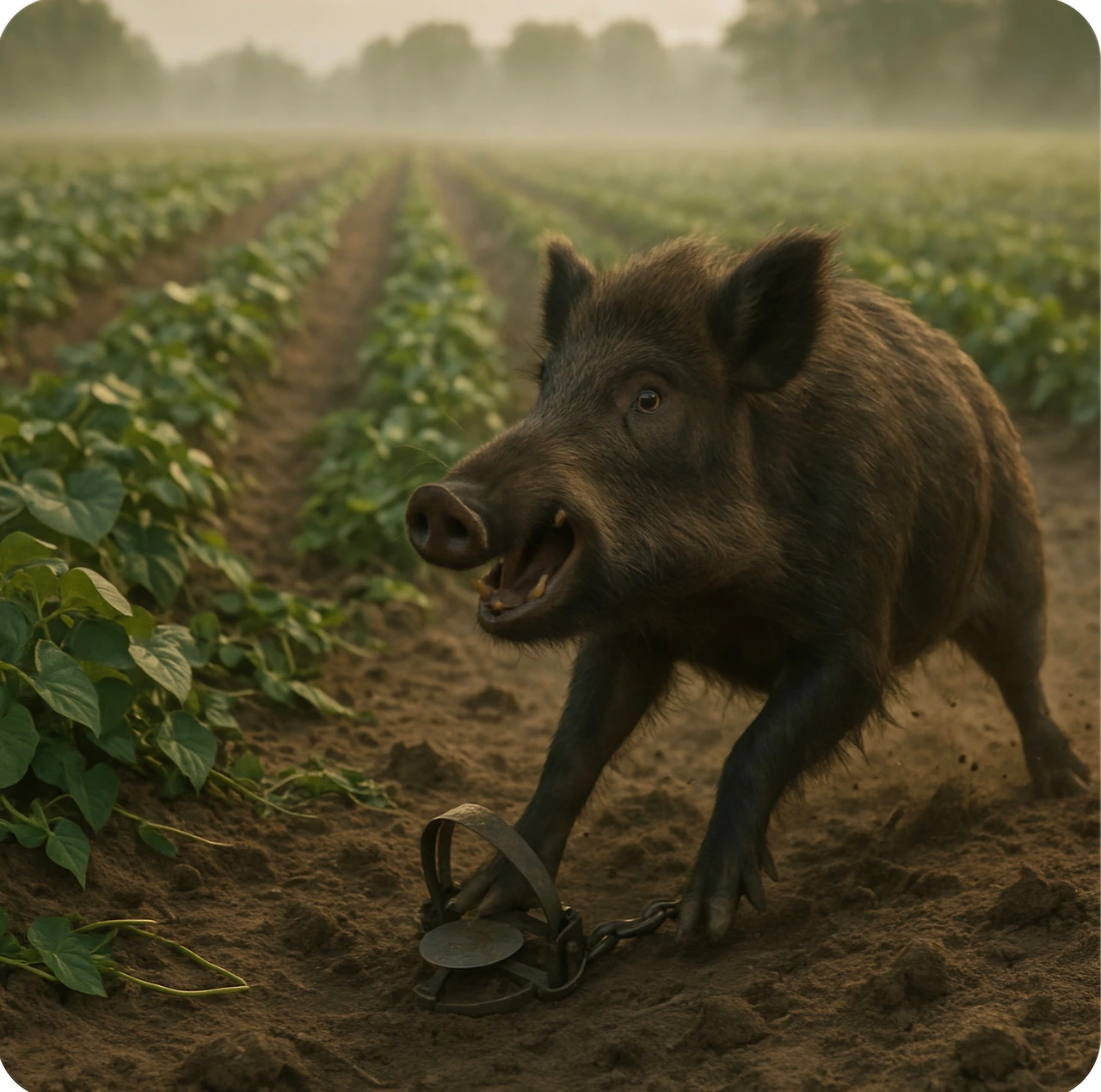 덫에 걸린 멧돼지는 소리쳤어요.