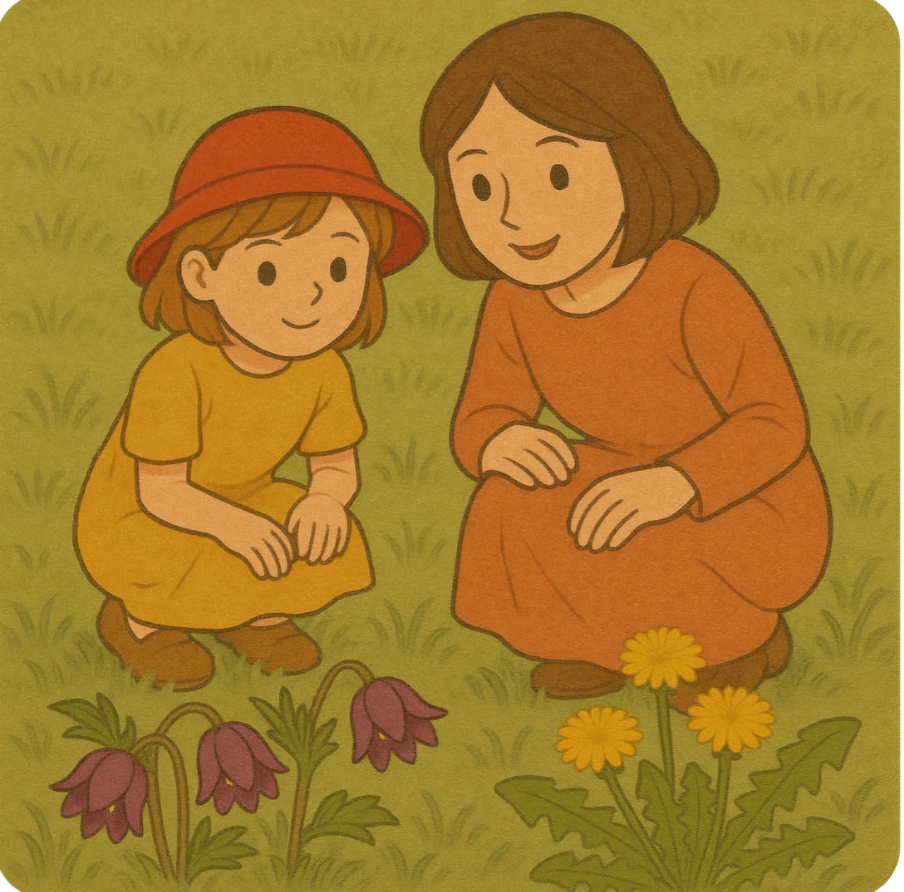 서라가 할미꽃과 민들레꽃을 생각하며 물었어요.