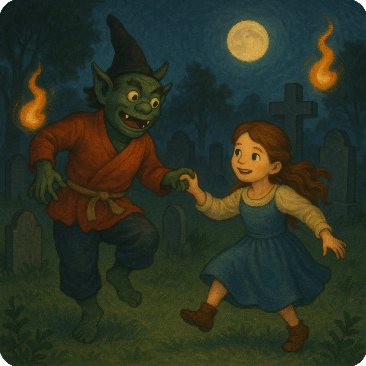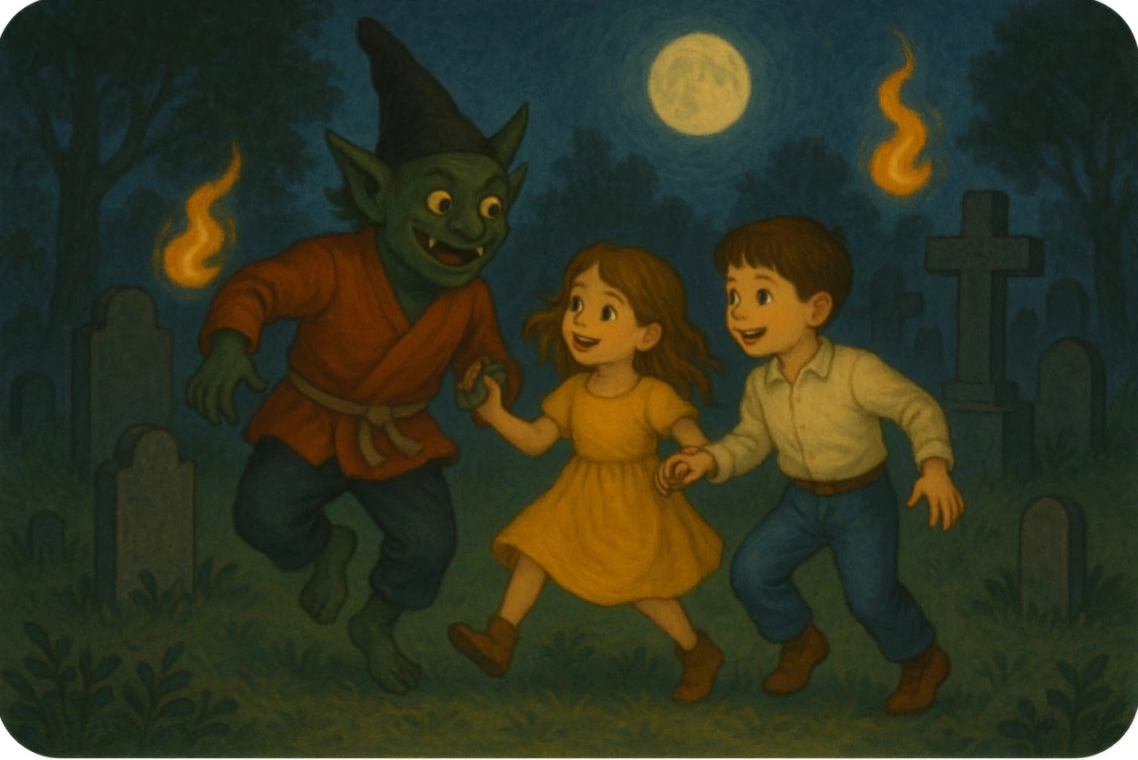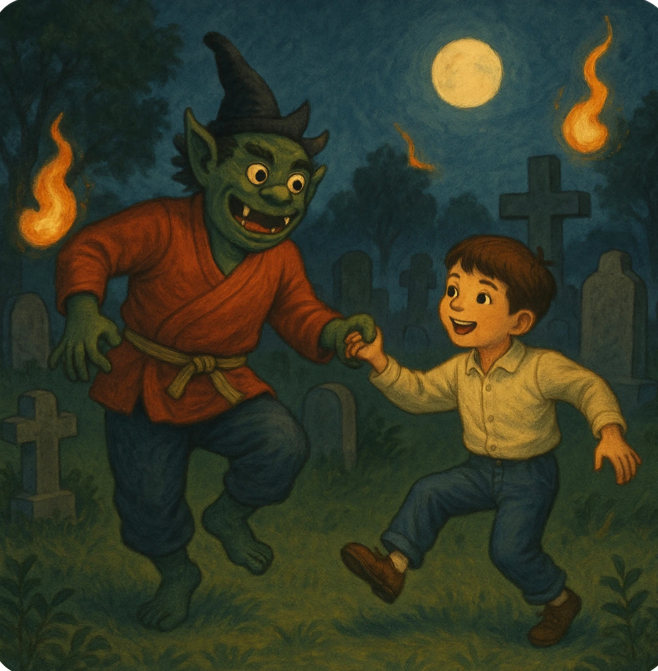 학교에서 늦게 돌아오던 영수는 마을 근처 공동묘지에서 도깨비를 만났어요.
