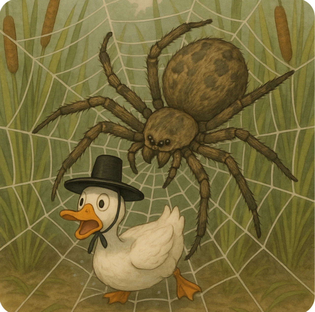 <영광저수지> 상류 갈대숲에서 알 낳던 <프리덤>은 대왕거미 <잭슨>이 쳐놓은 거미줄에 잡히고 말았어요.