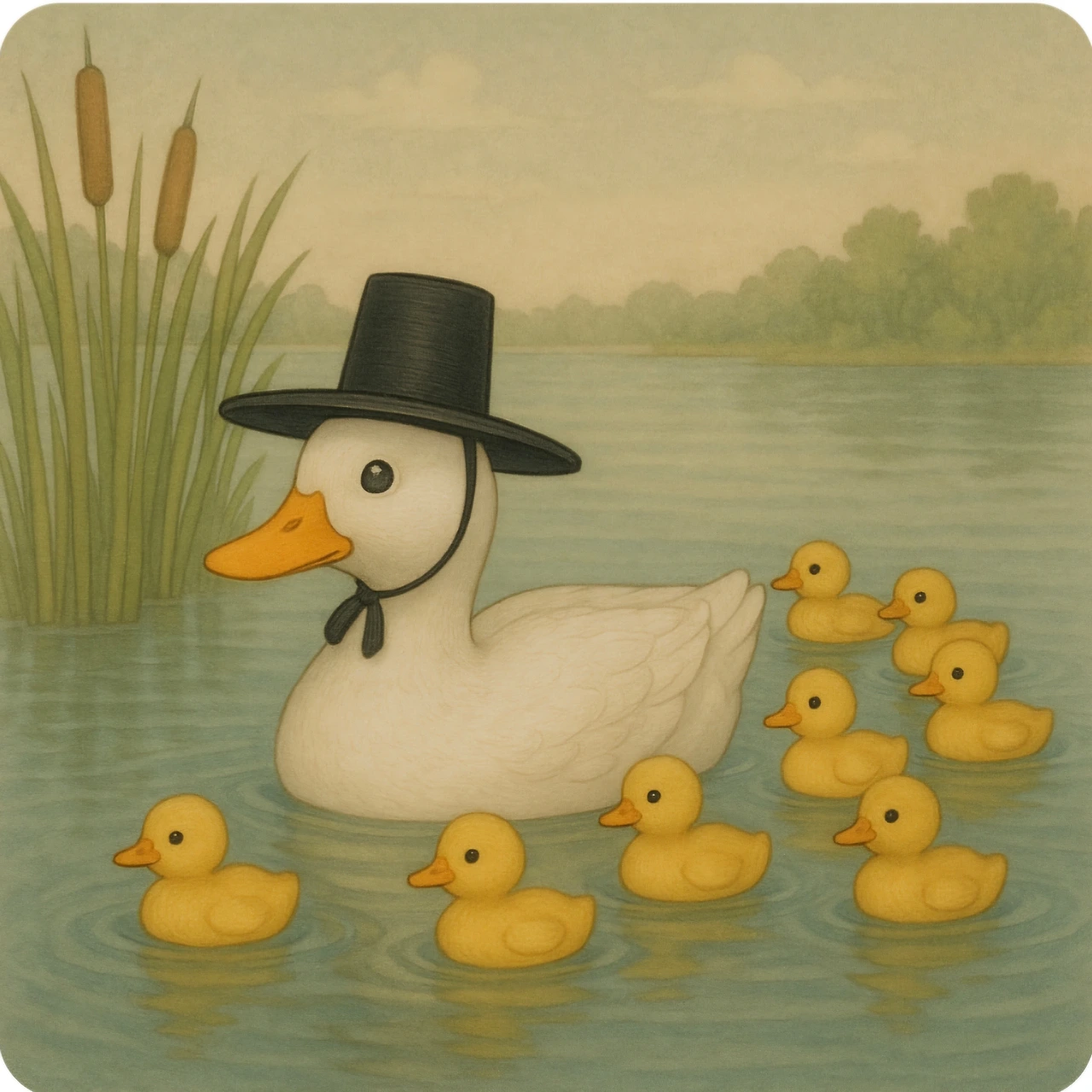 갈대숲에서 일곱 마리 새끼오리가 태어났어요.