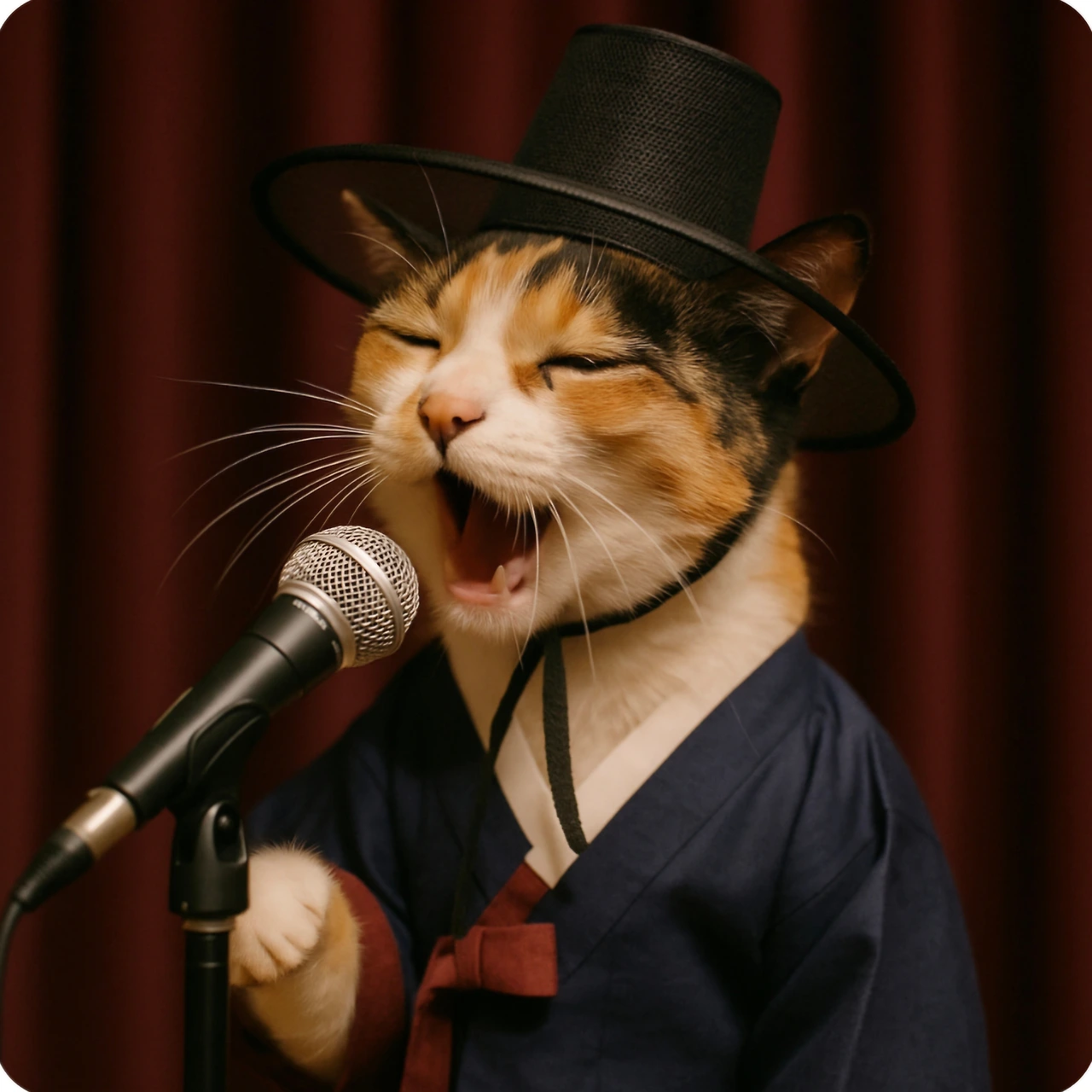 고양이가 판소리 하는 걸 처음 본 사람들은 놀랐어요.