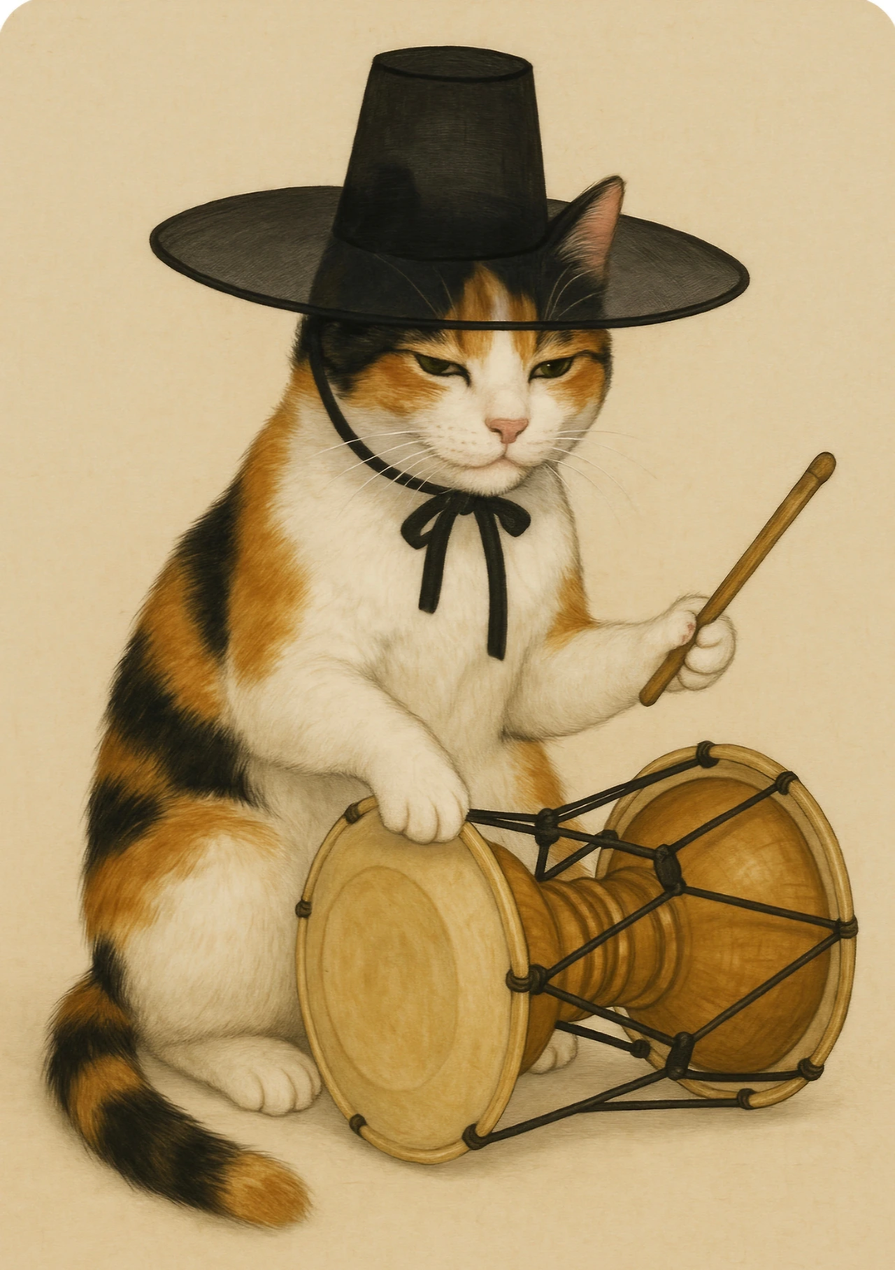 고양이가 사람보다 장구도 잘 치고 노래도 잘 부르는 것을 보고 인기 많은 고양이가 될 것 같았어요.
