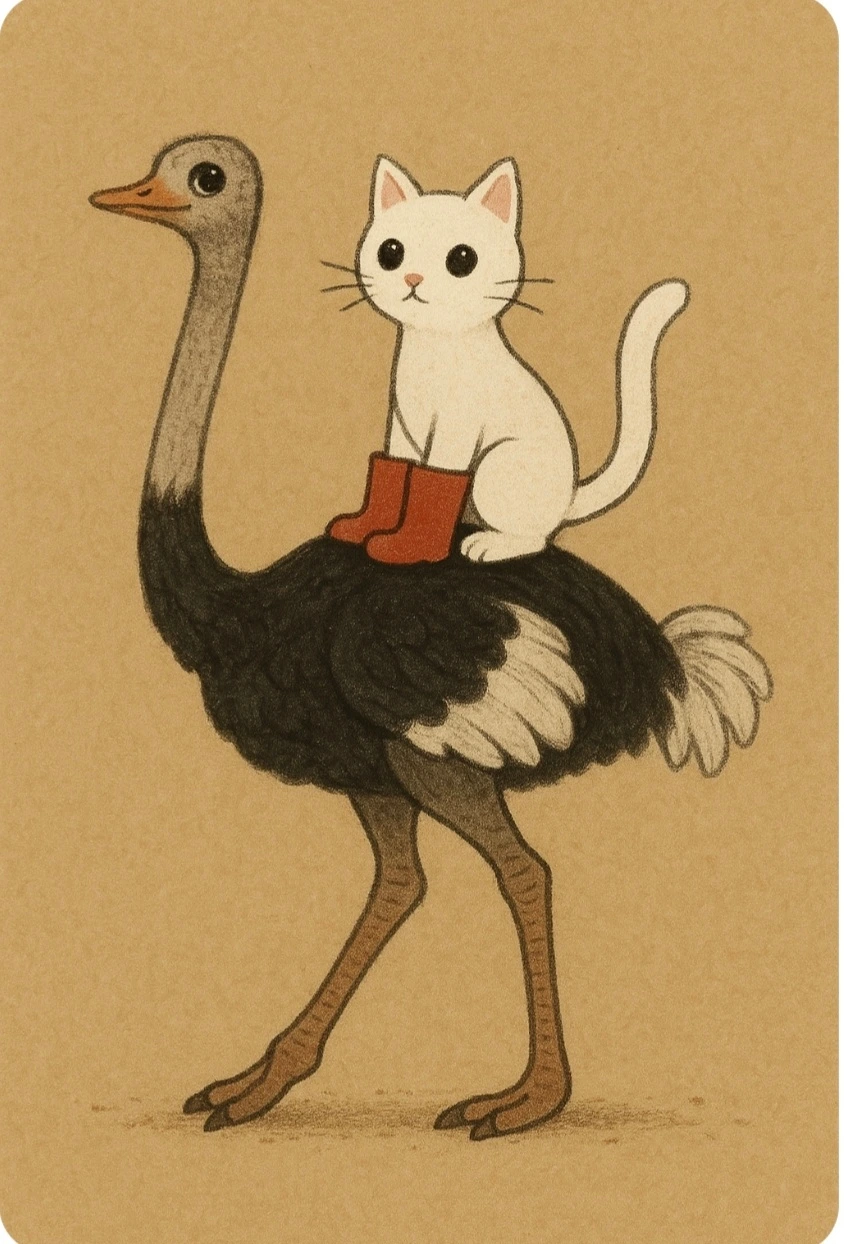 자신의 경험을 사실대로 말해줘 다른 고양이들도 타조 등에 타기를 바랐어요.