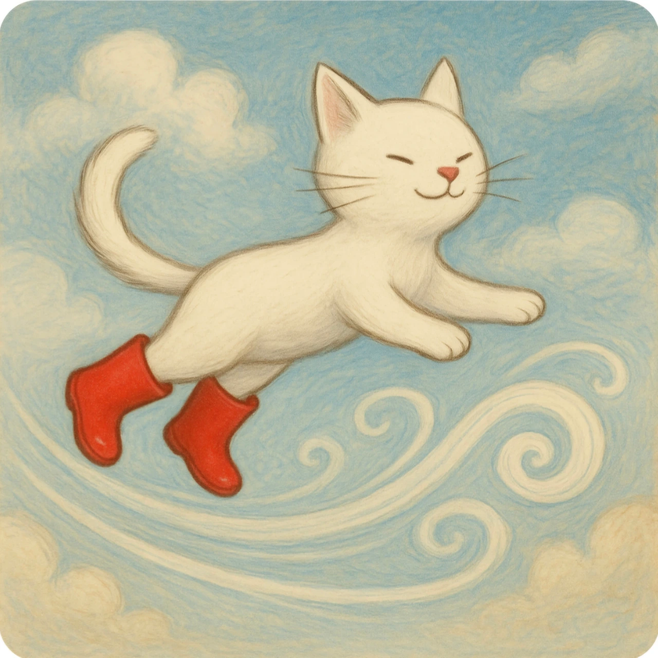 빨강 장화 신은 하얀 고양이 <하니>는 바람에 올라탔어요.
