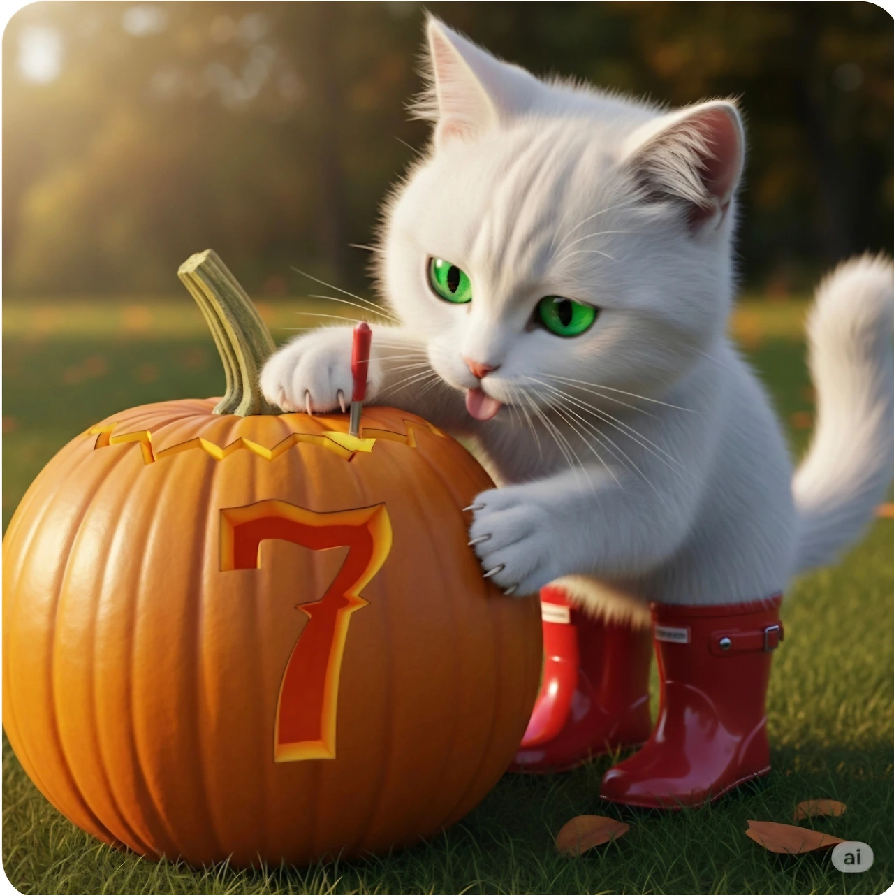 호박에 숫자 칠(7)이 선명하게 조각되었어요.