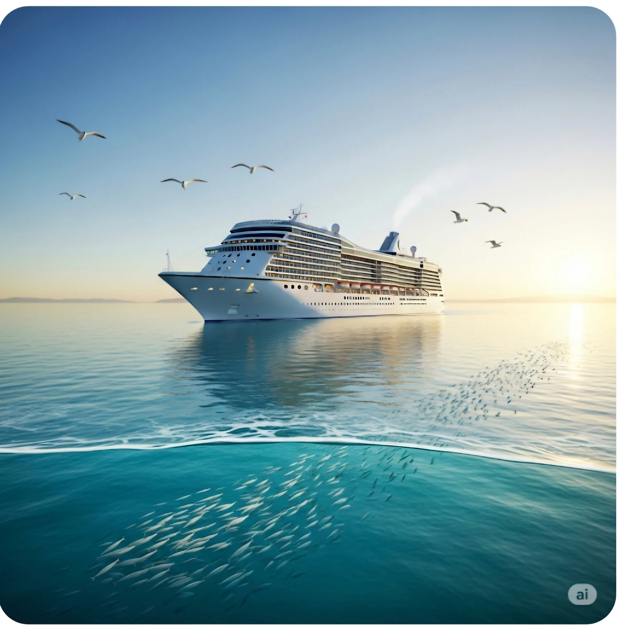 대왕문어, 상어, 가오리가 춤추던 바다 위를 아무 일도 없었던 것처럼 크루즈선은 천천히 움직였어요.