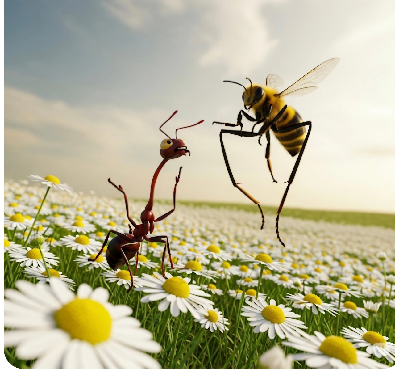 목이 긴 꿀벌이 다리 긴 무당벌레에게 말했어요.