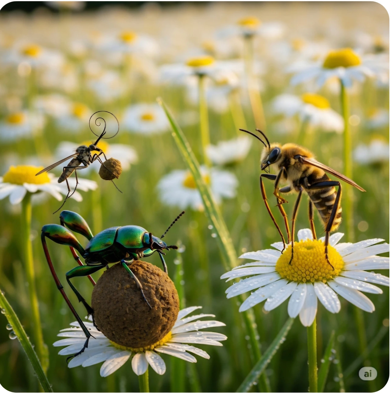 다리 긴 꿀벌이 다리 긴 쇠똥구리에게 말했어요.