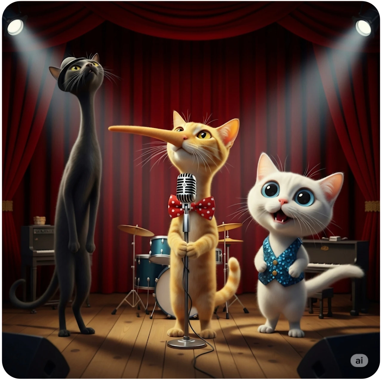 노래하는 고양이 세 마리는 자신감이 넘쳤어요.