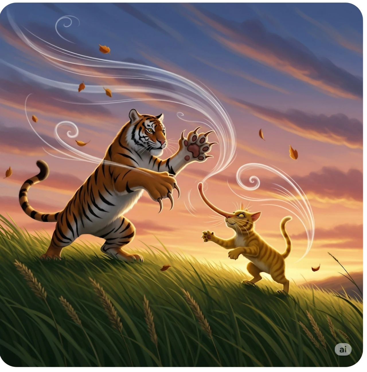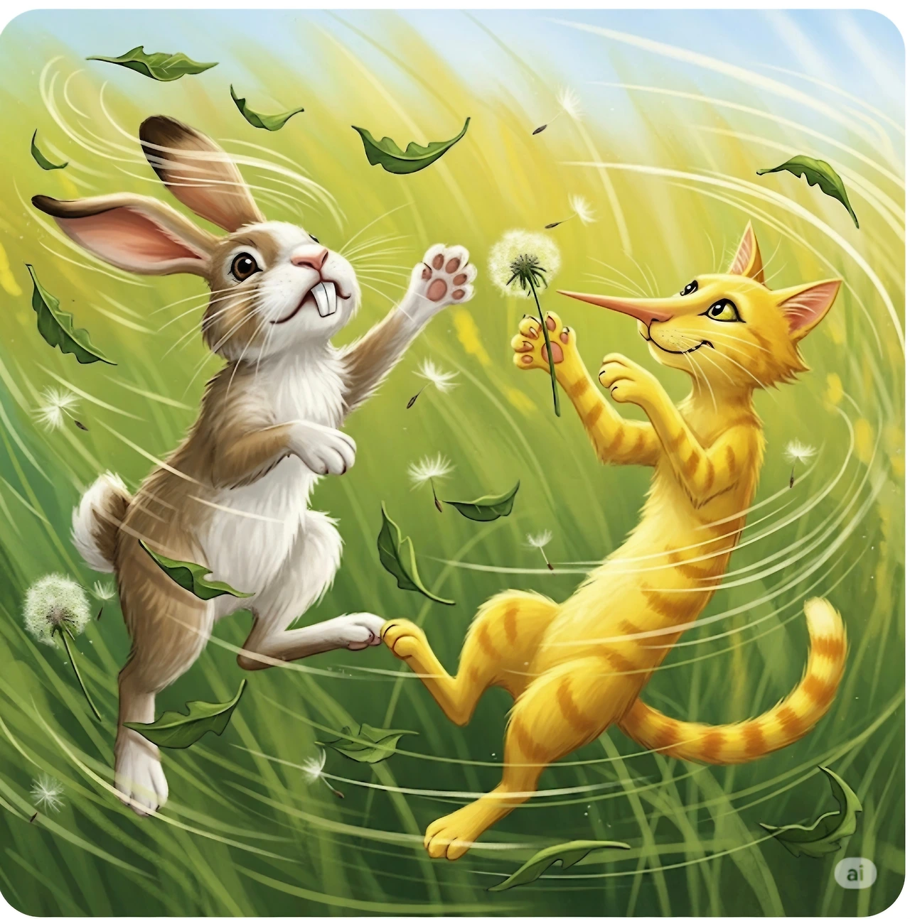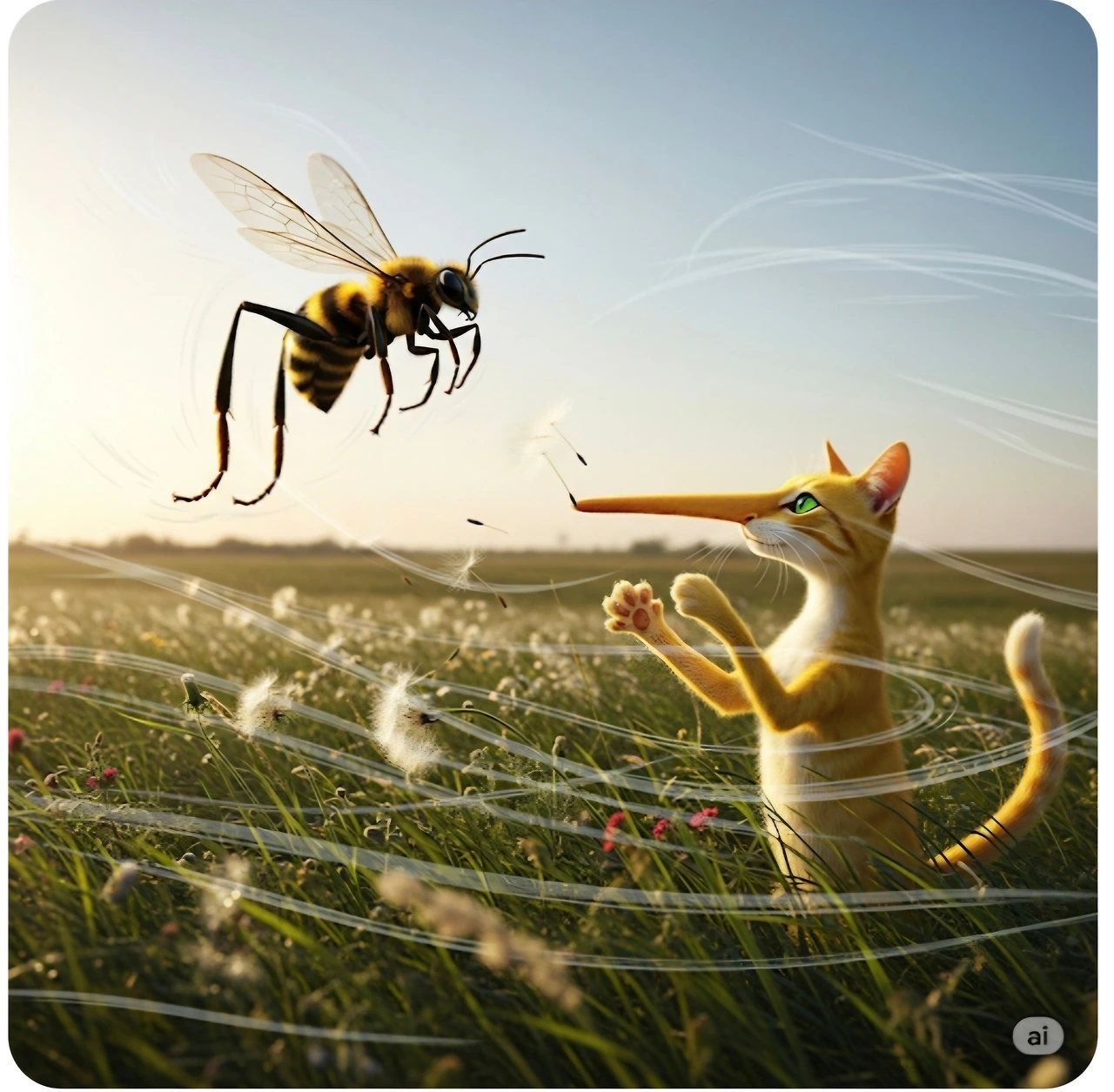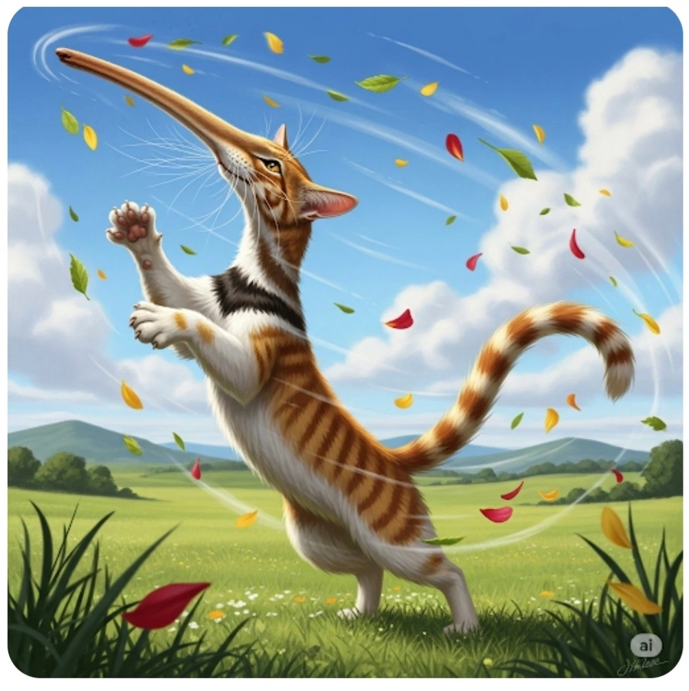 코가 긴 고양이는 바람이 부는 방향으로 힘껏 뛰었어요.
