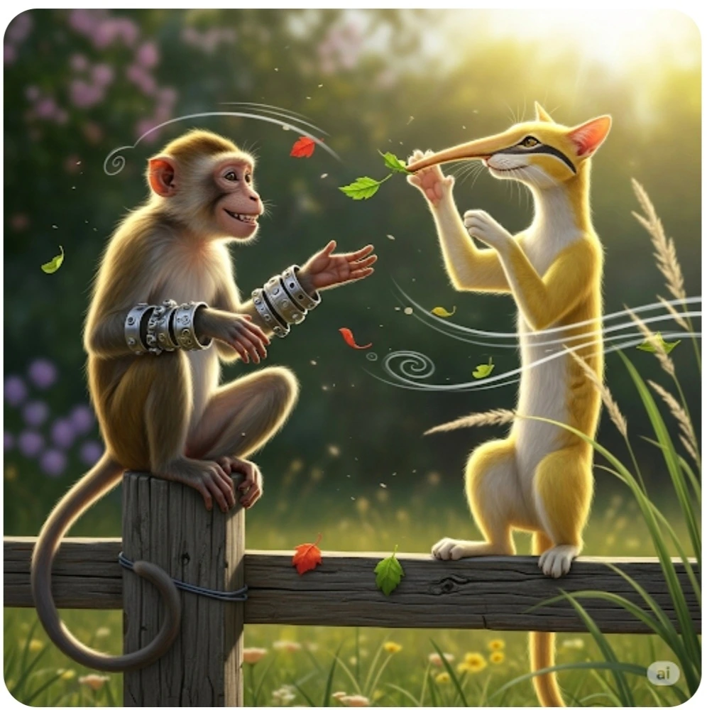 나뭇가지를 붙잡고 놀던 원숭이었어요.
