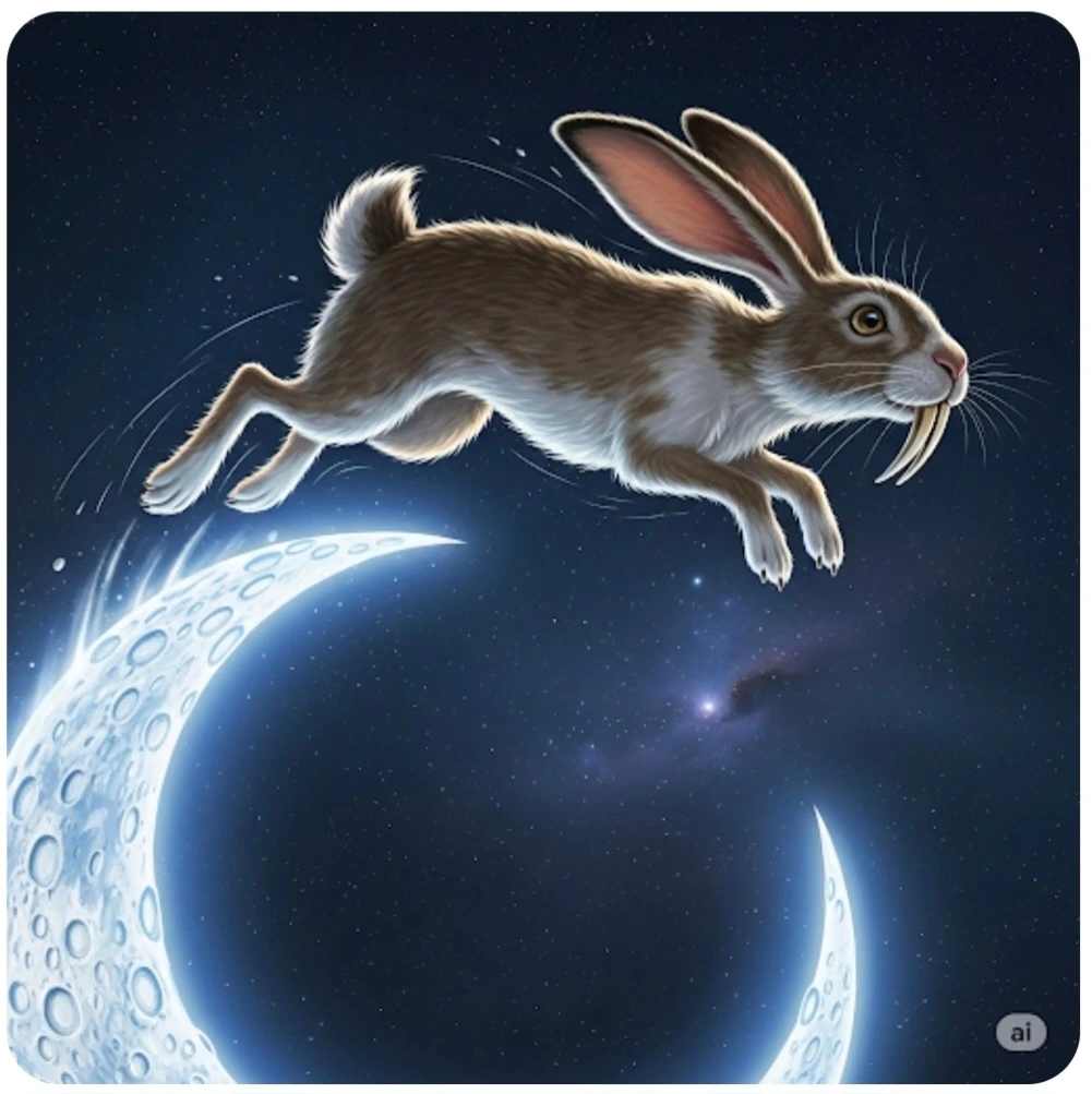 앞니가 긴 토끼는 달에서 뛰어내릴까 생각했어요.