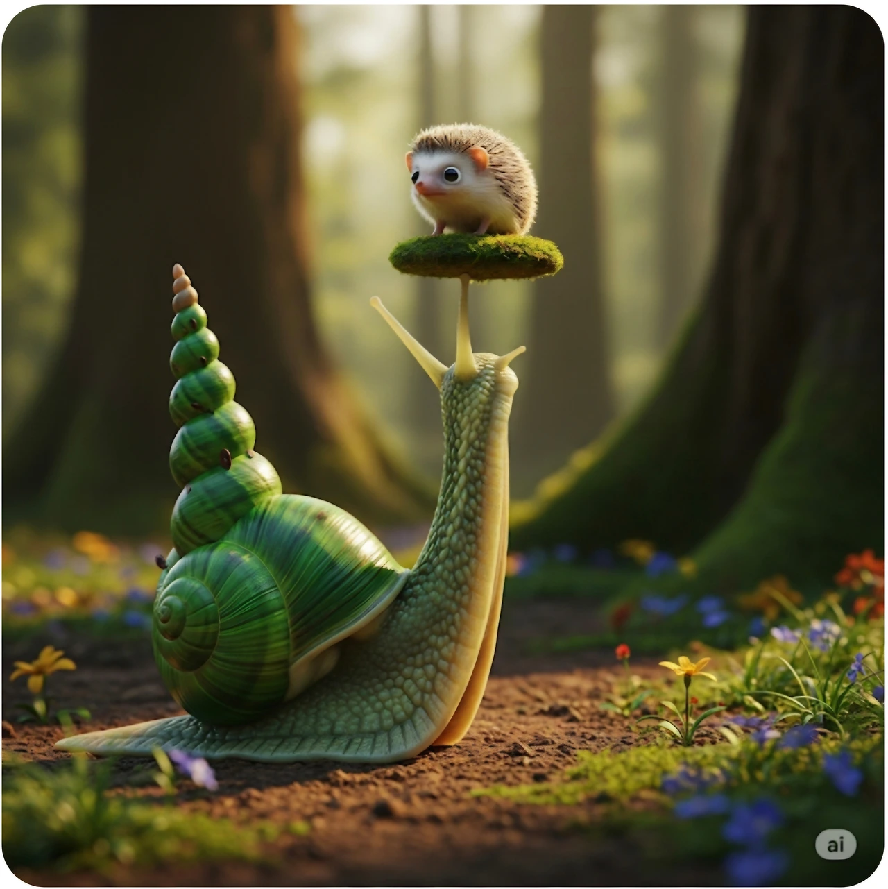 그 뒤를 달팽이가 느리게 따라갔어요.