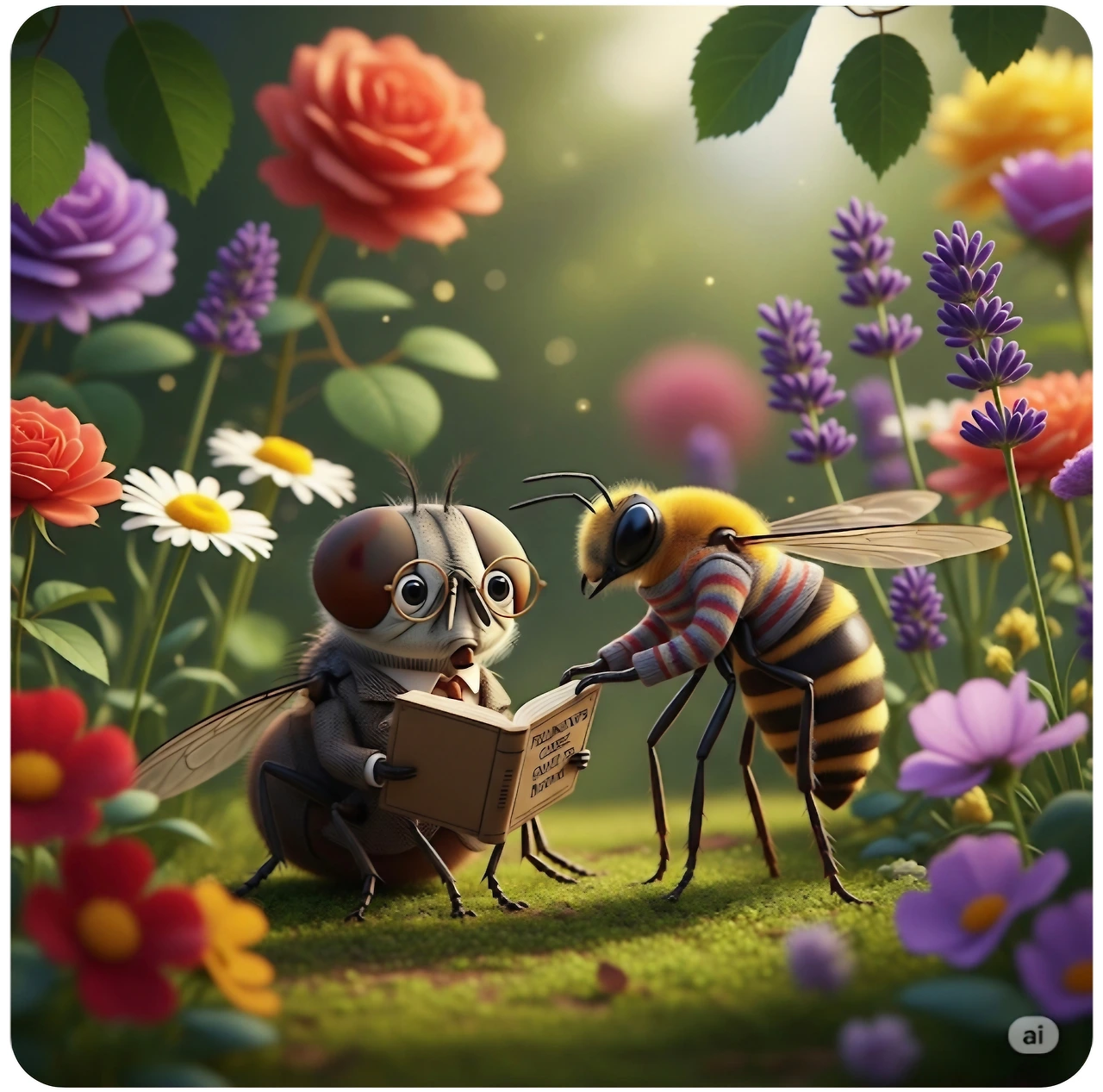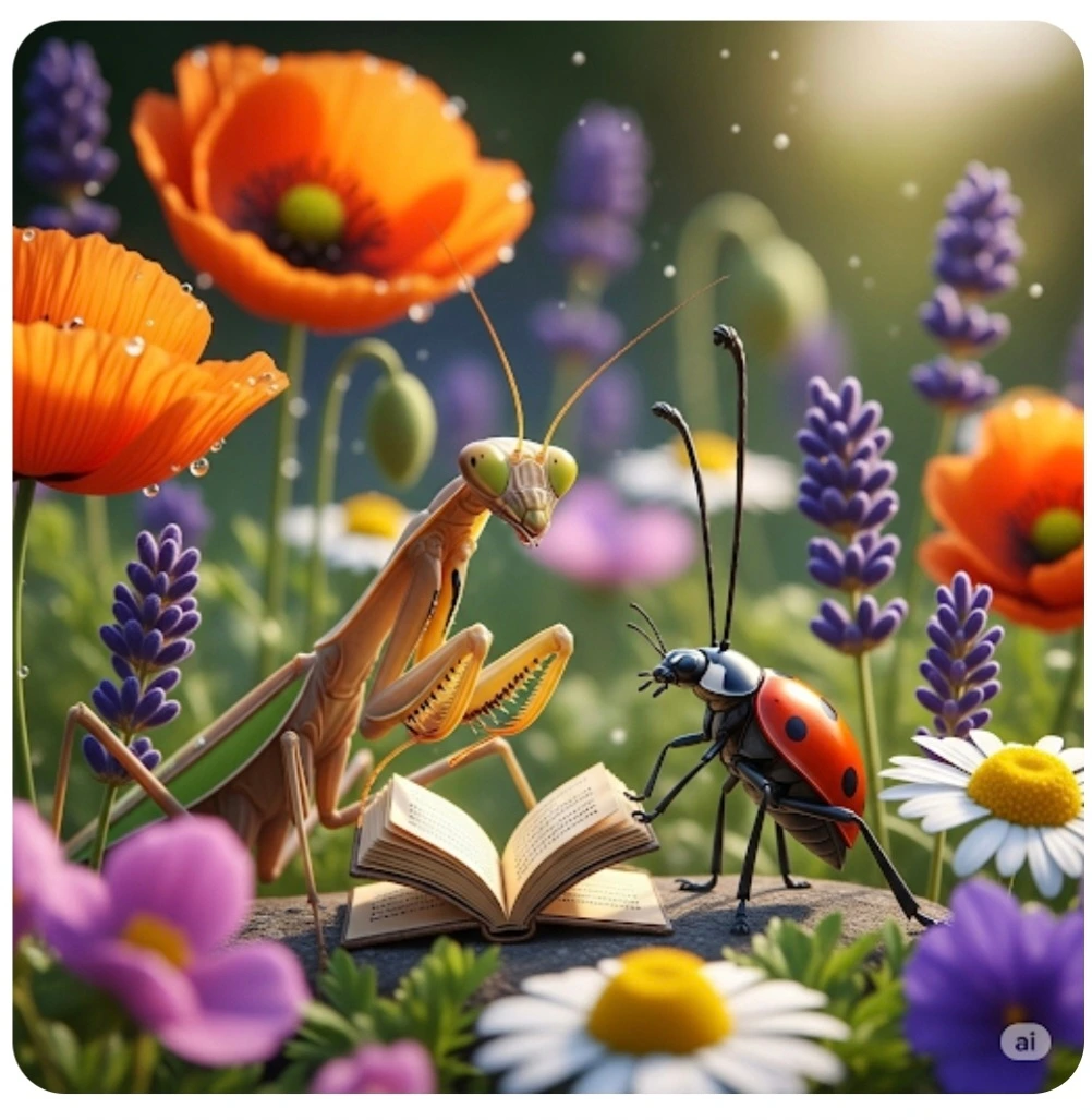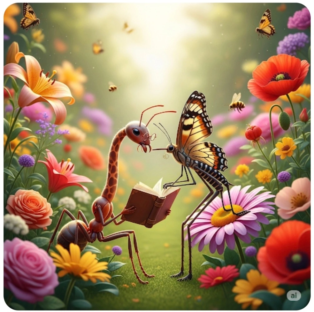 책 읽는 나비는 개미가 다가오는 것도 모르고 책 읽기에 집중했어요.