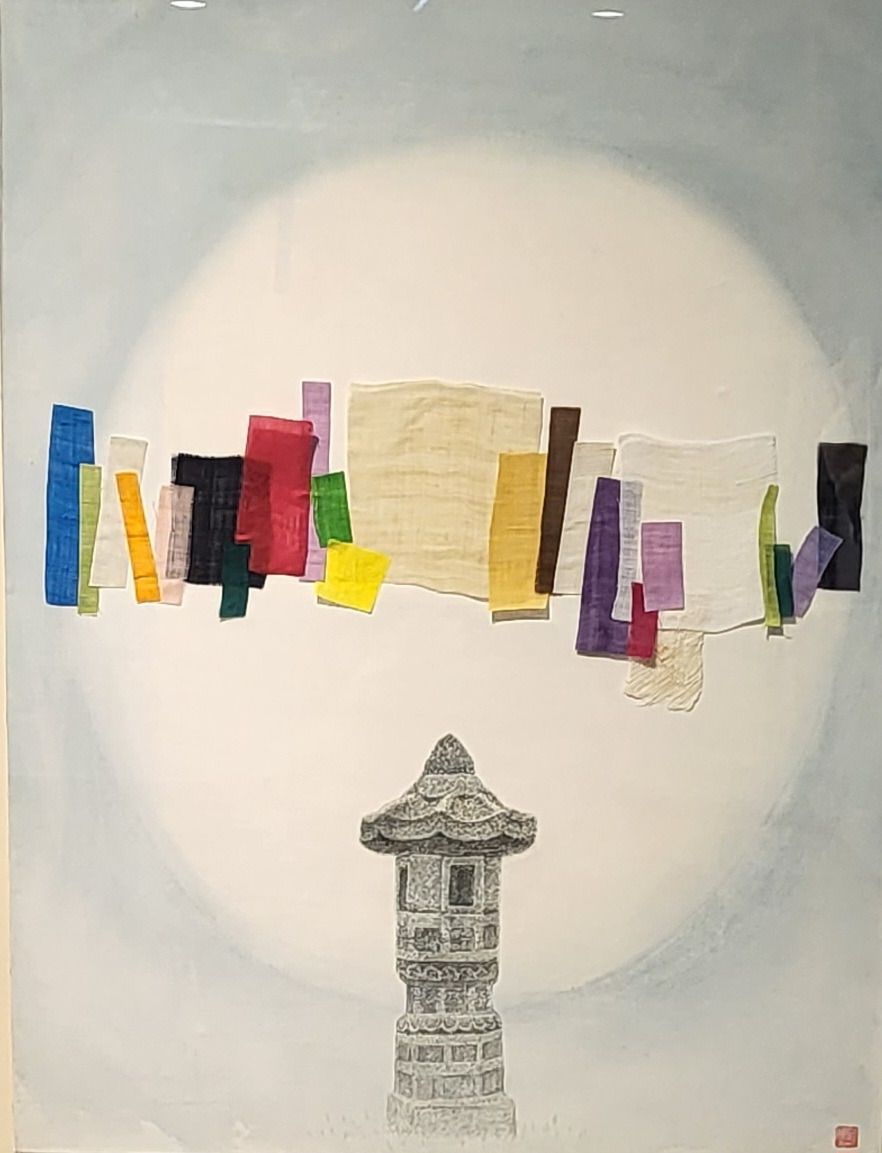 보름달과 천 조각이 공동체를 위하고 표현한 것이라면 등탑과 낙관은 작가 자신의 모습이라 할 수 있다.