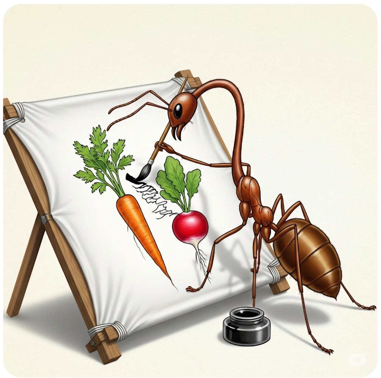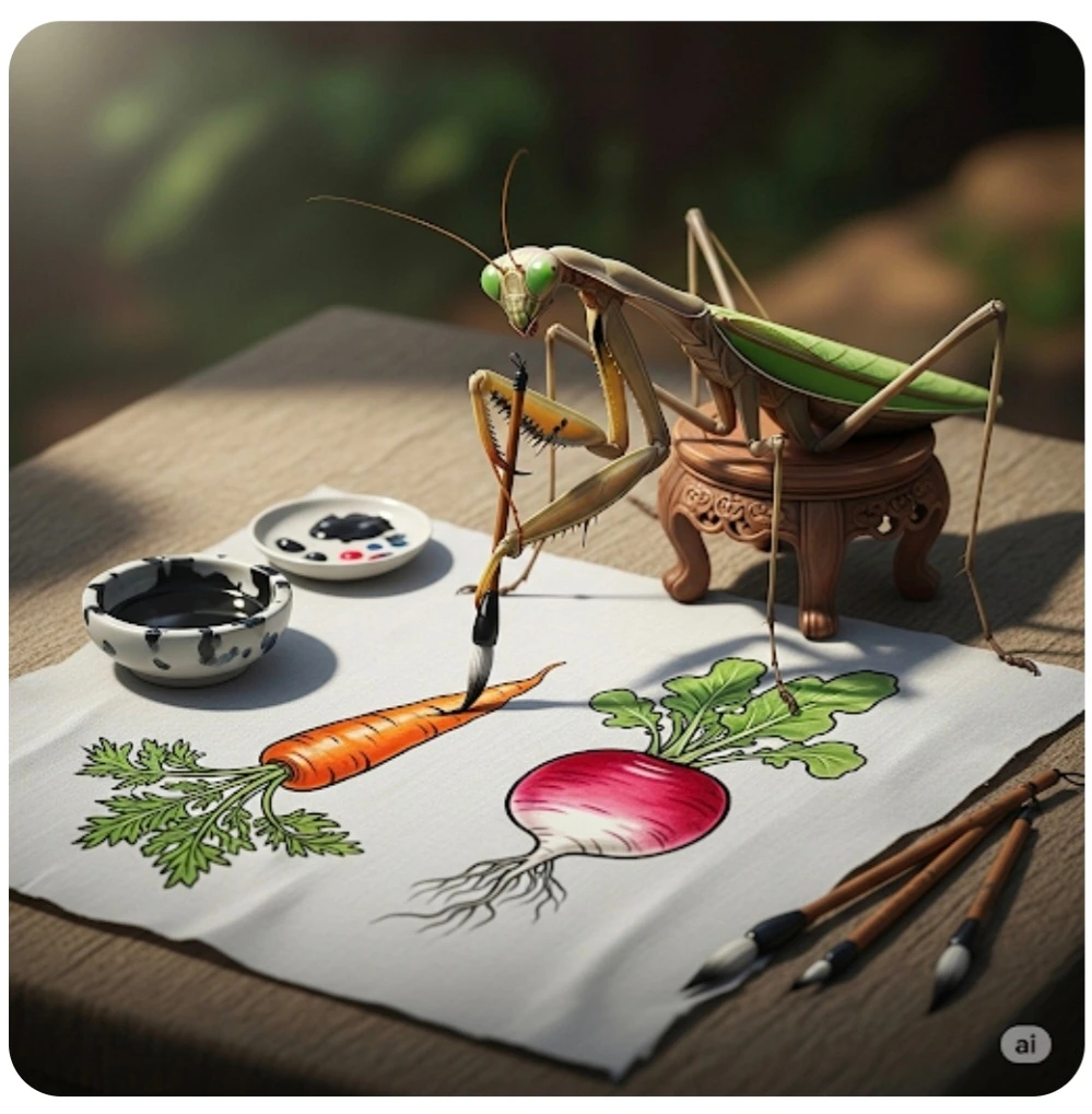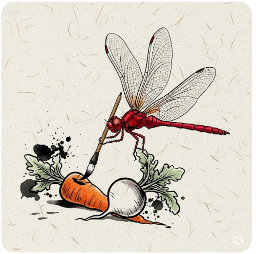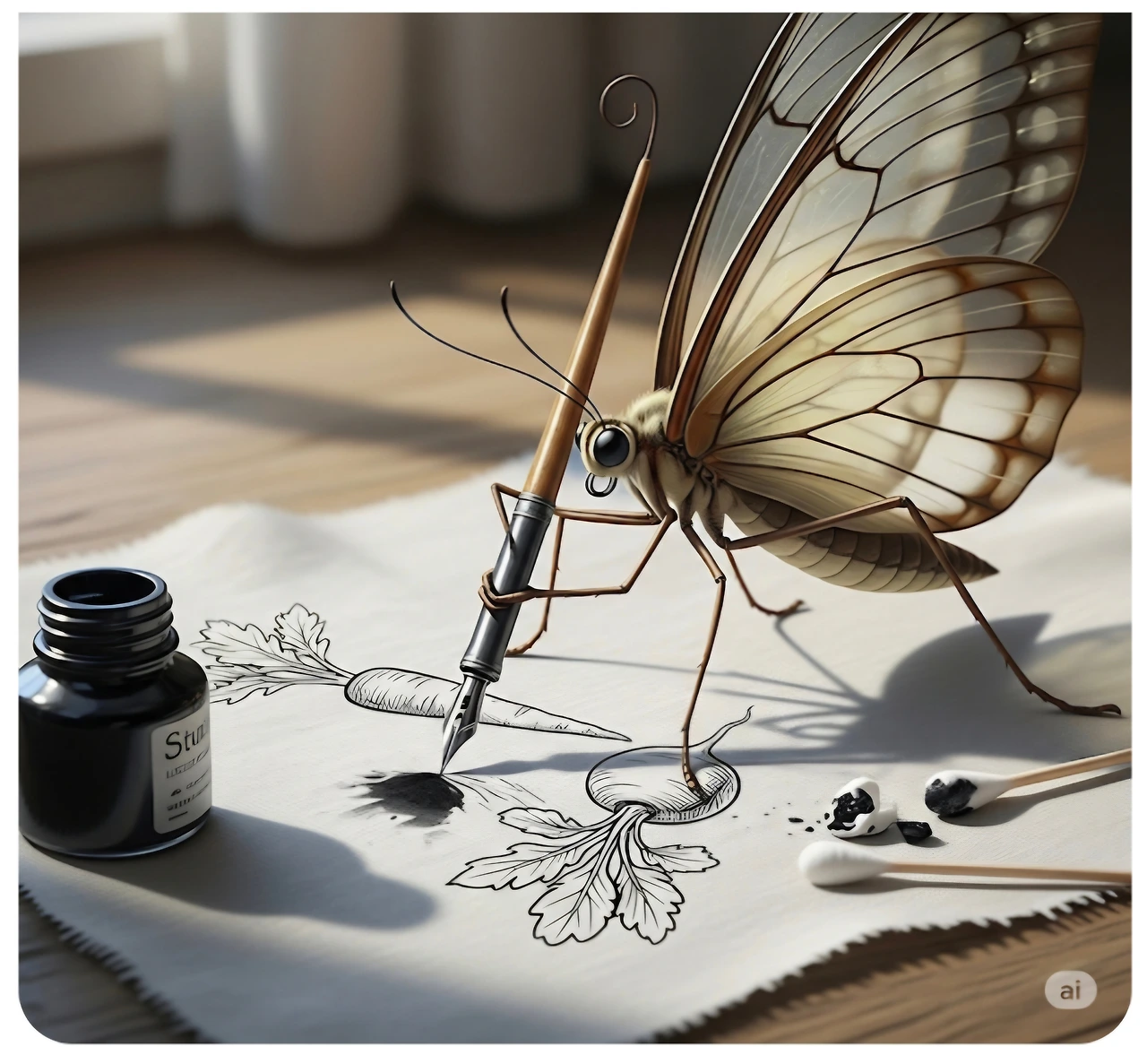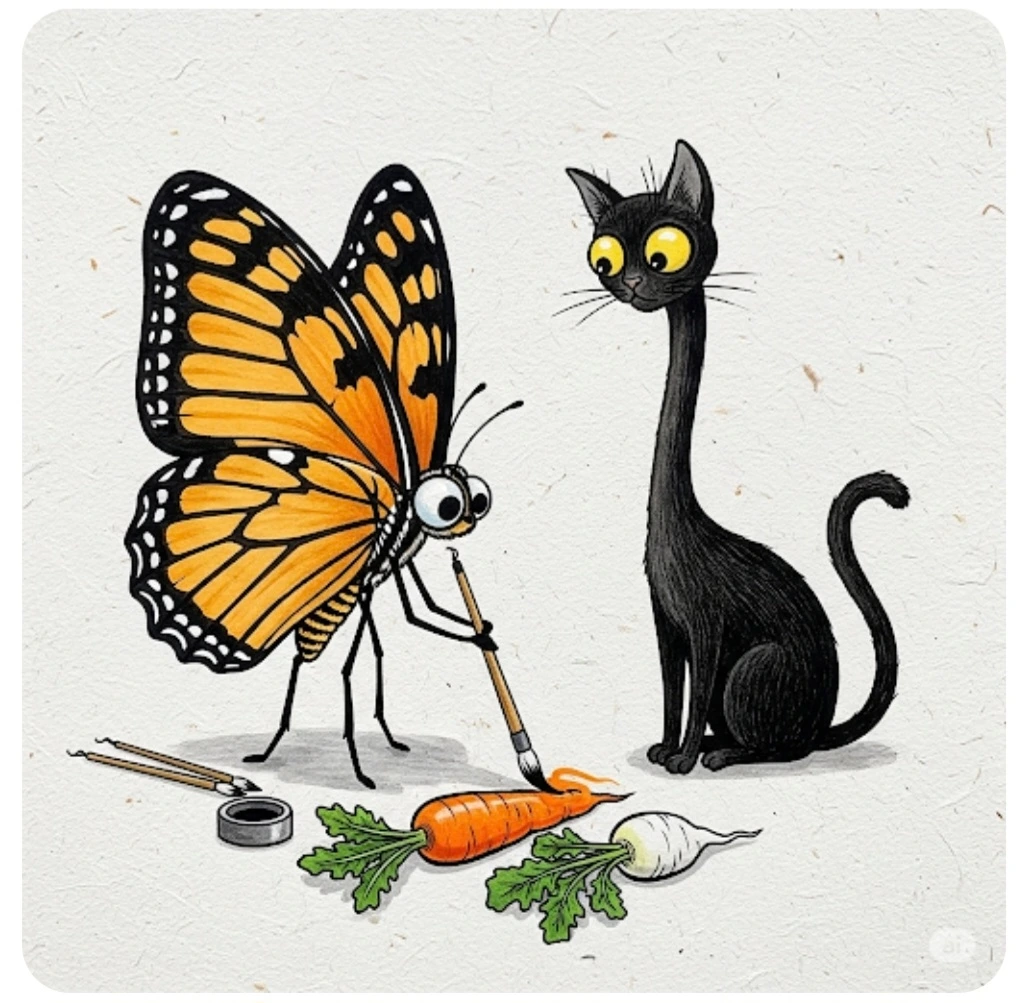 호랑나비가 그리는 당근과 무를 <덴디>가 지켜봤어요.