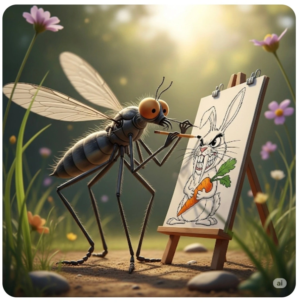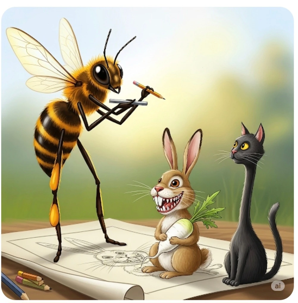 말벌은 토끼 엉덩이에 침을 한 방 쏘고 싶었어요.