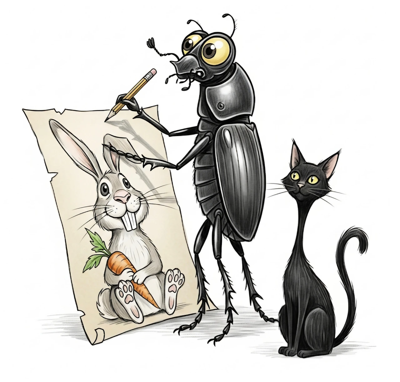 쇠똥구리도 당근 들고 있는 토끼를 그렸어요.