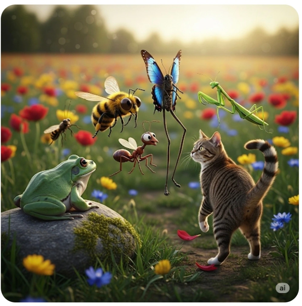 청개구리도 꽃밭을 깨끗이 이용했는데 고양이 두 녀석만 꽃밭을 돌아다니며 예쁜 꽃을 꺾고 놀았어요.