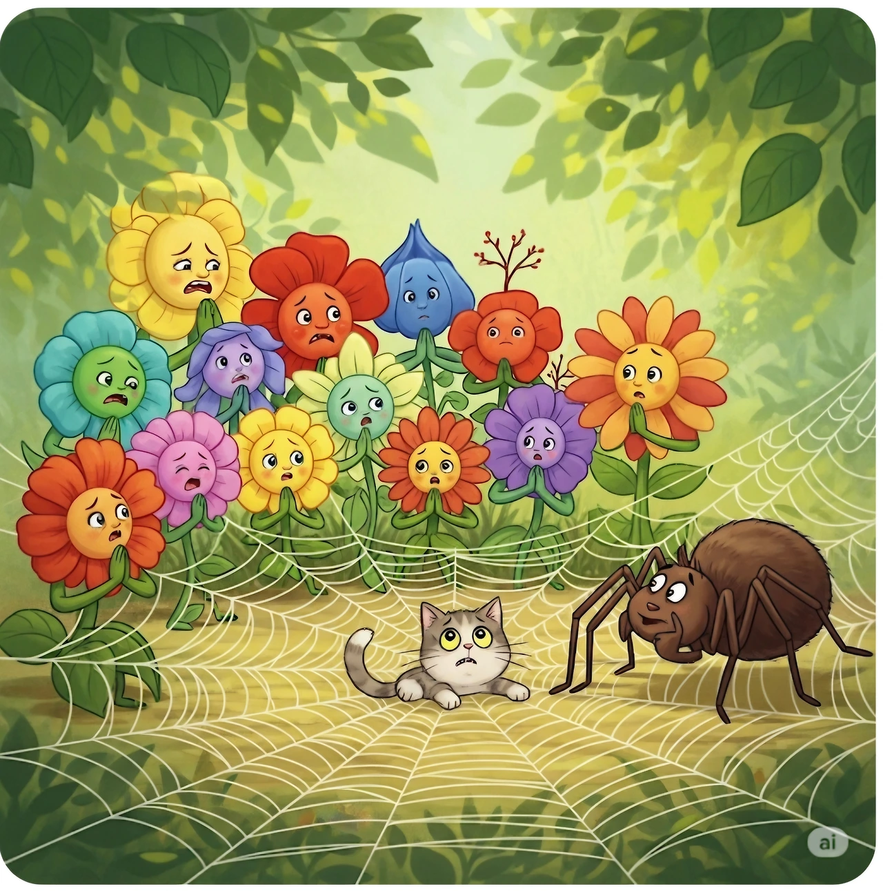 그 꽃밭 입구에 튼튼한 거미줄을 치면 고양이를 잡을 수 있을 거야."