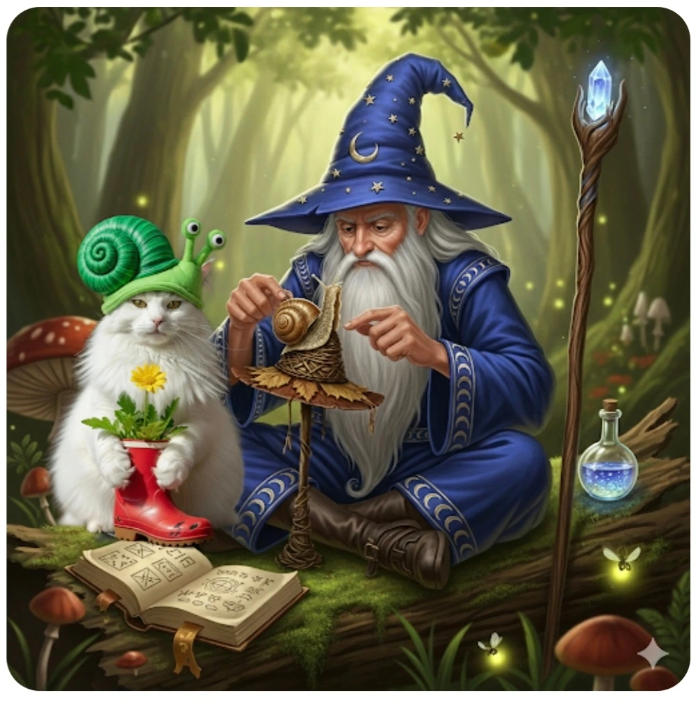 마법사가 달팽이 모자 만드는 법을 자세히 배웠어요.