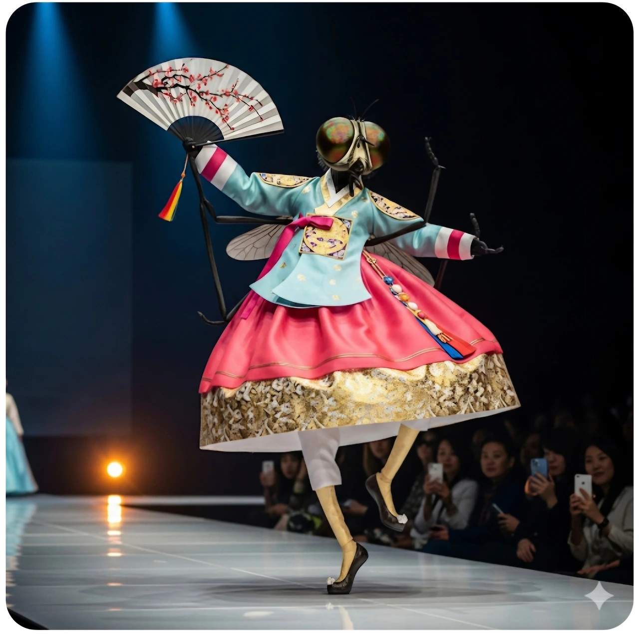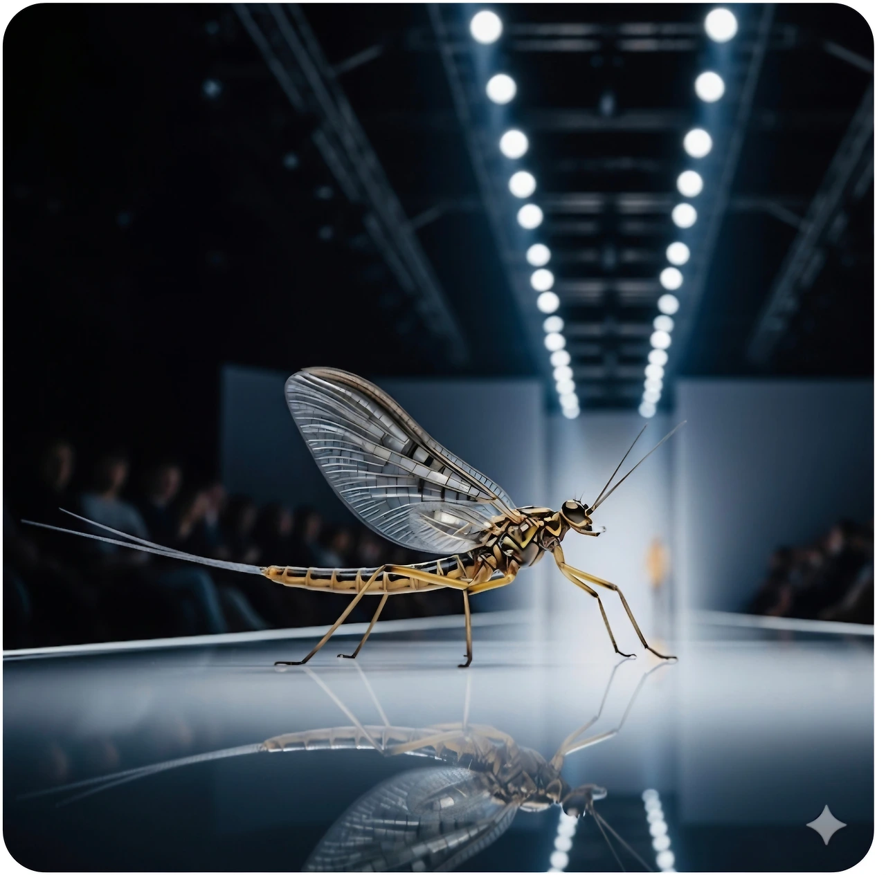 패션쇼에 처음 나온 하루살이는 부끄럽고 자신감이 없었어요.