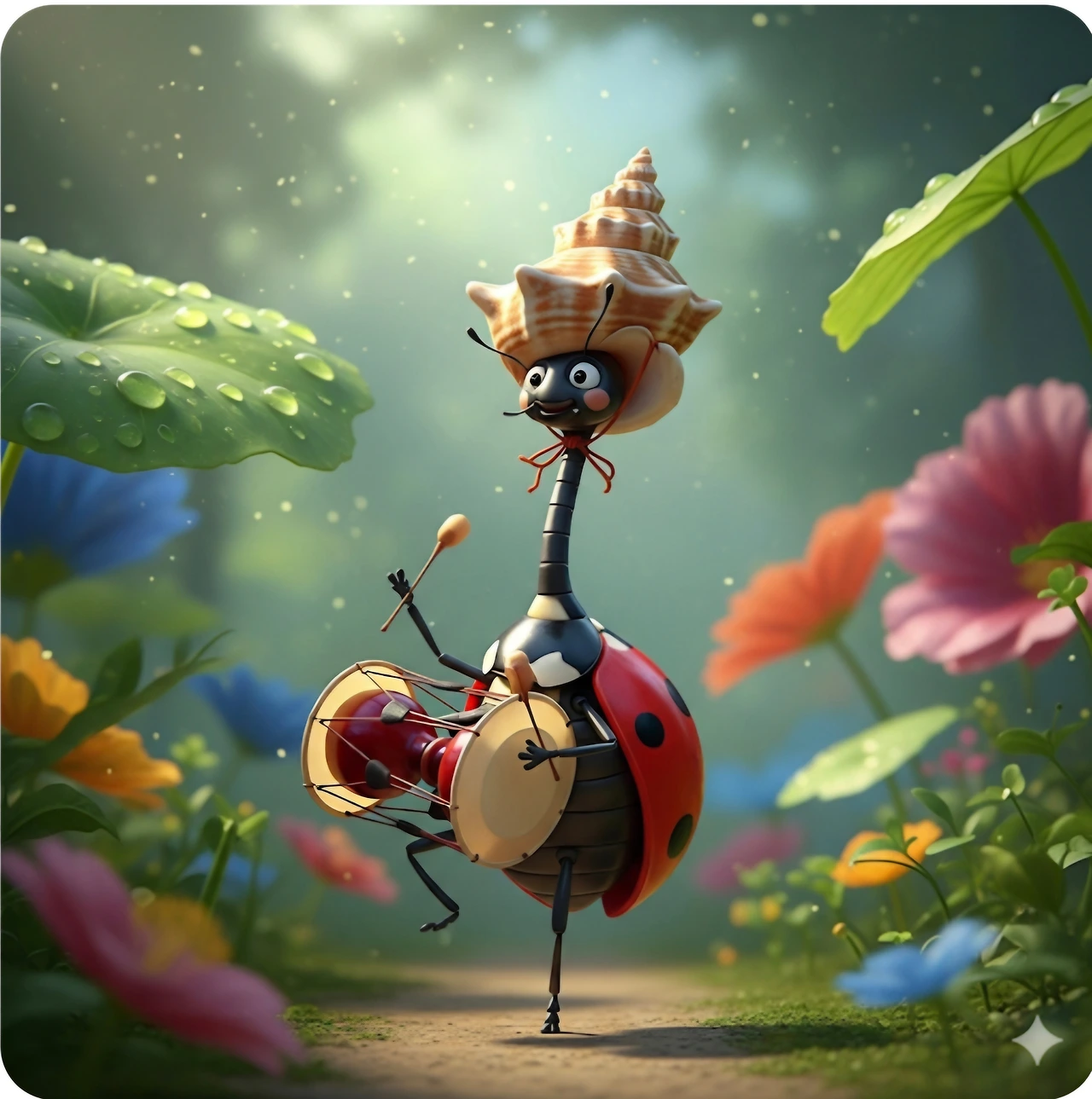사물놀이 연습하던 무당벌레는 장구 치며 돌다가