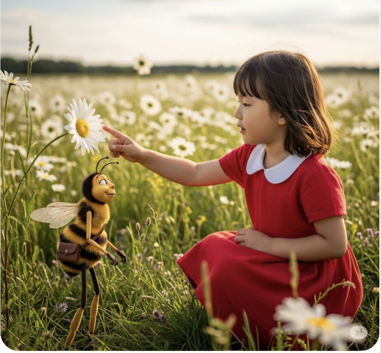 소녀는 꿀벌과 약속하고 돌아갔어요.