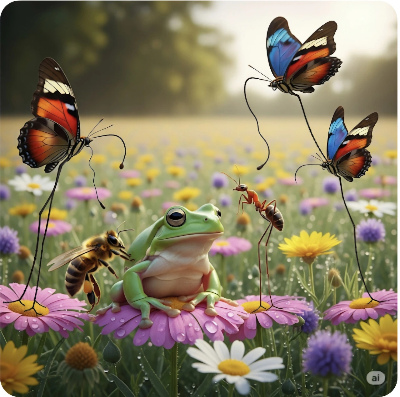 들판에서 곤충들이 모여 소녀를 기다렸어요,