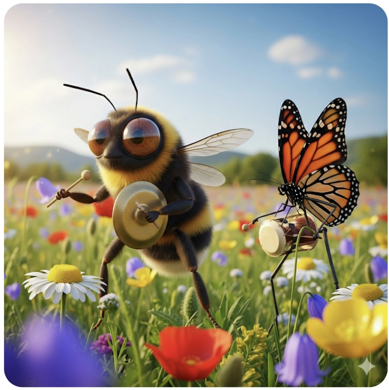 꿀벌과 나비가 연주를 시작했어요.