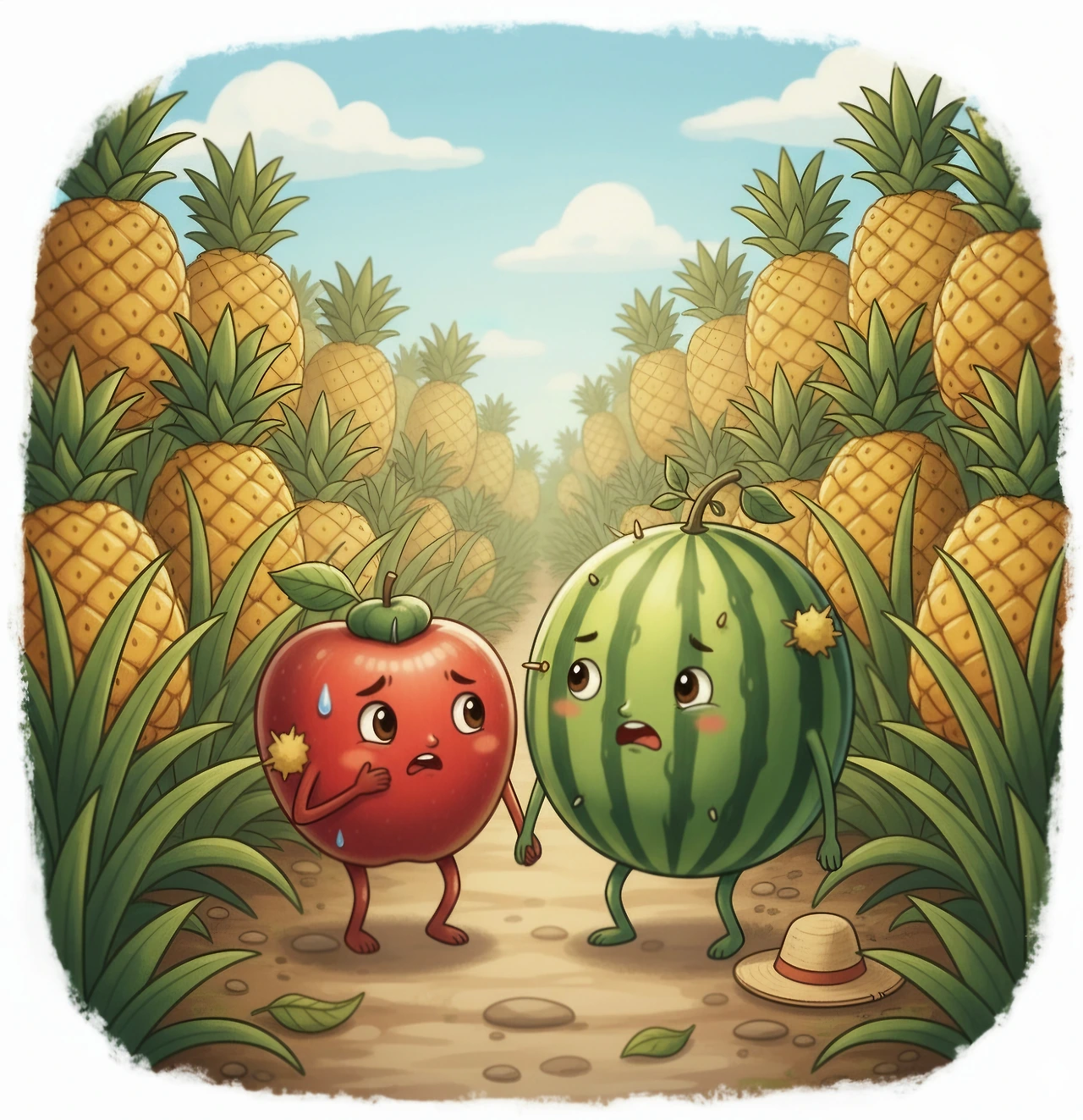 사과와 수박은 파인애플을 먹은 뒤 사과대추밭으로 향했어요.