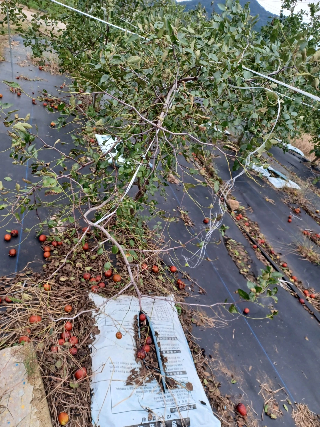 가을 태풍이 대추농장을 쑥대밭으로 만들었어요.