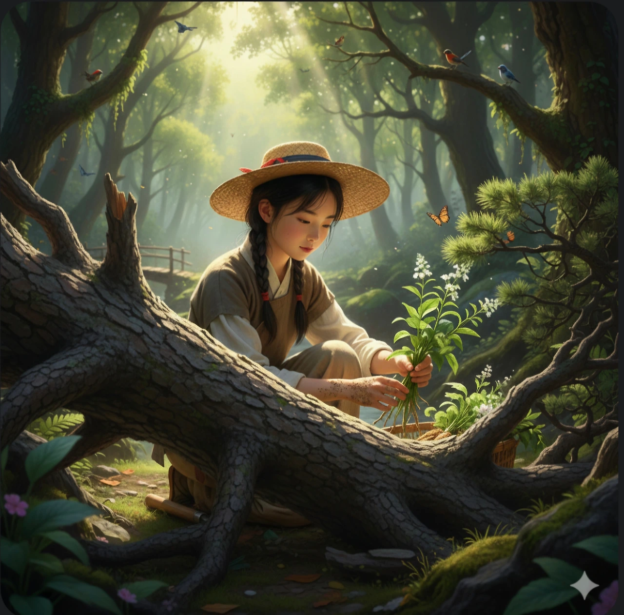 춘심은 약초 가방을 들고 숲으로 출발했어요.