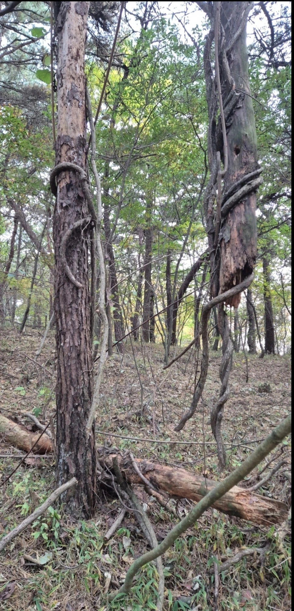소나무들이 가지를 길게 뻗어 참다래 넝쿨을 내려쳤어요.
