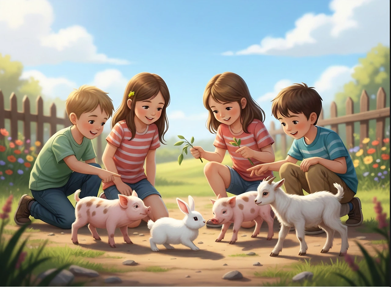 형과 동생이 동물을 키우며 사이좋게 지내는 것이 보였어요.