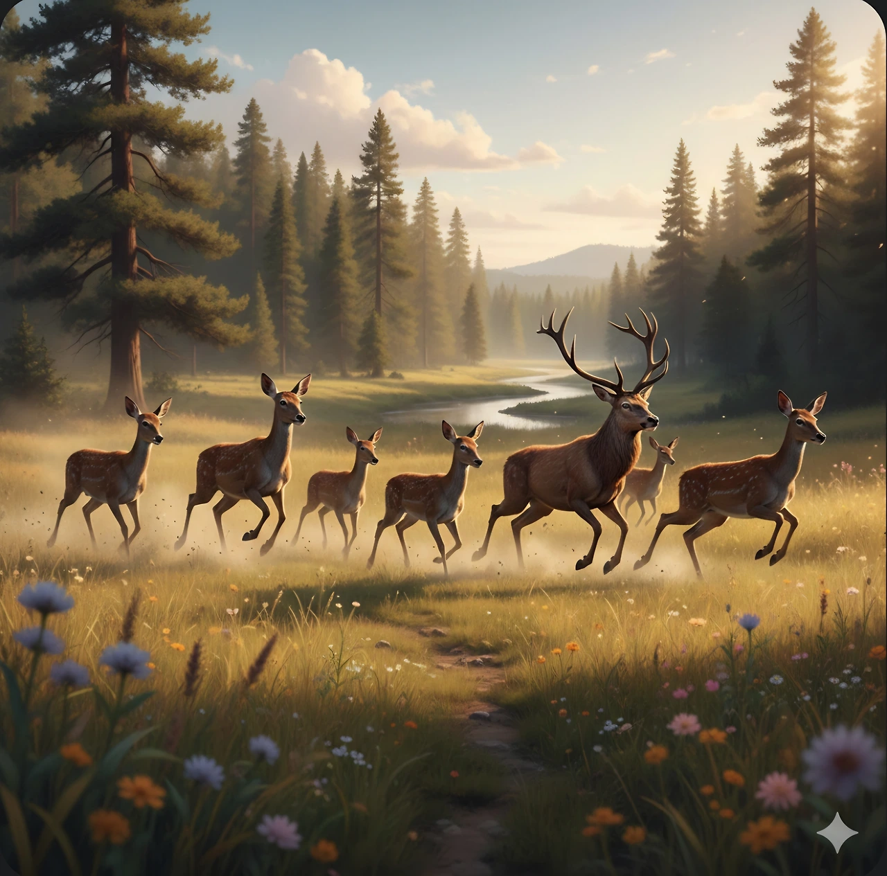 난폭한 사슴들이 어딘가로 몰려갔어요.