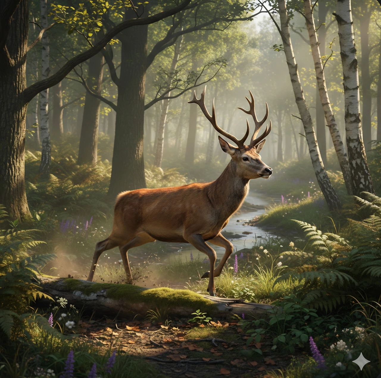야생사슴은 숲의 아름다움과 맛있는 풀이 많다고 자랑했어요.