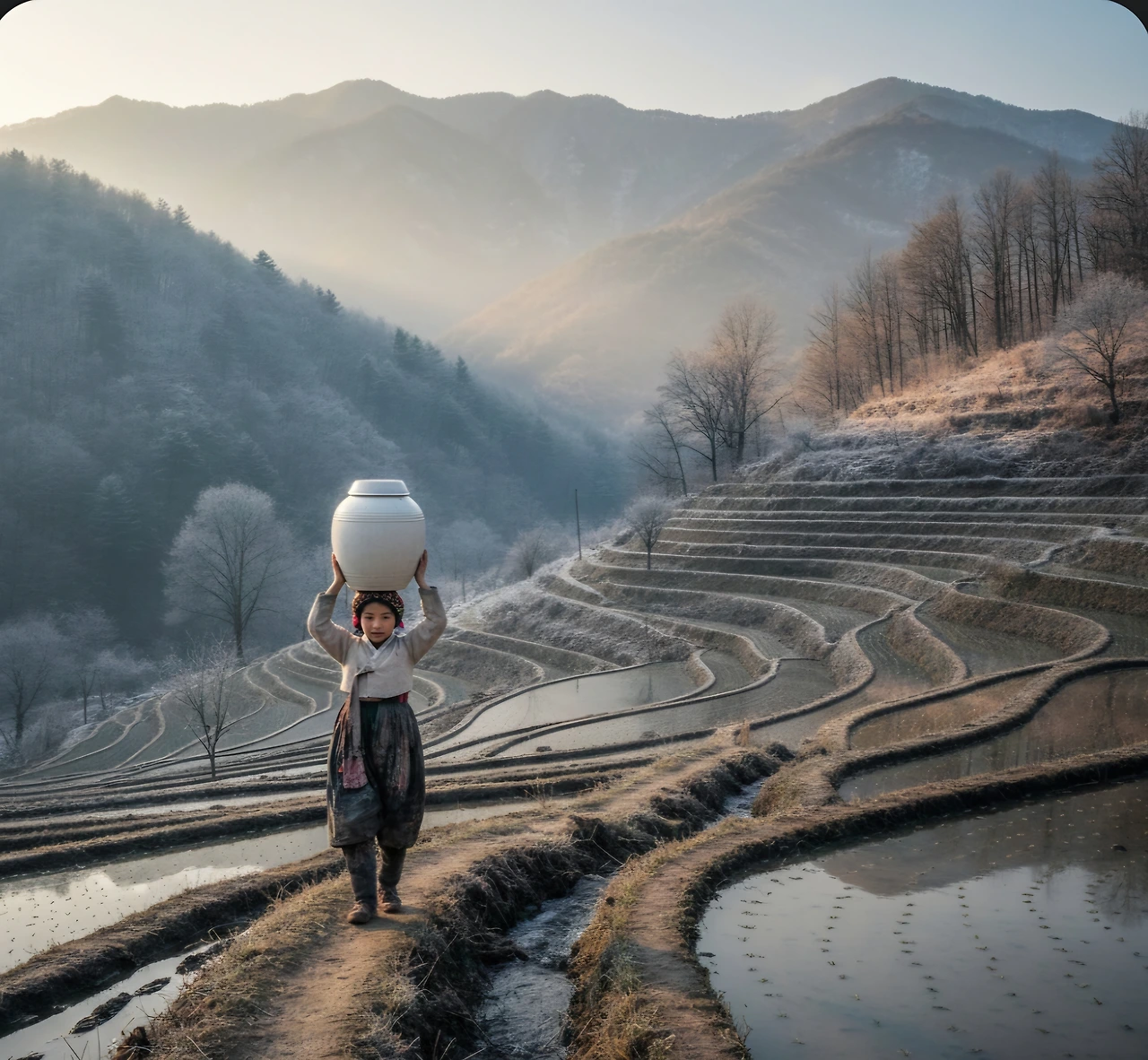 선옥은 물통을 들고 샘터로 향했어요.