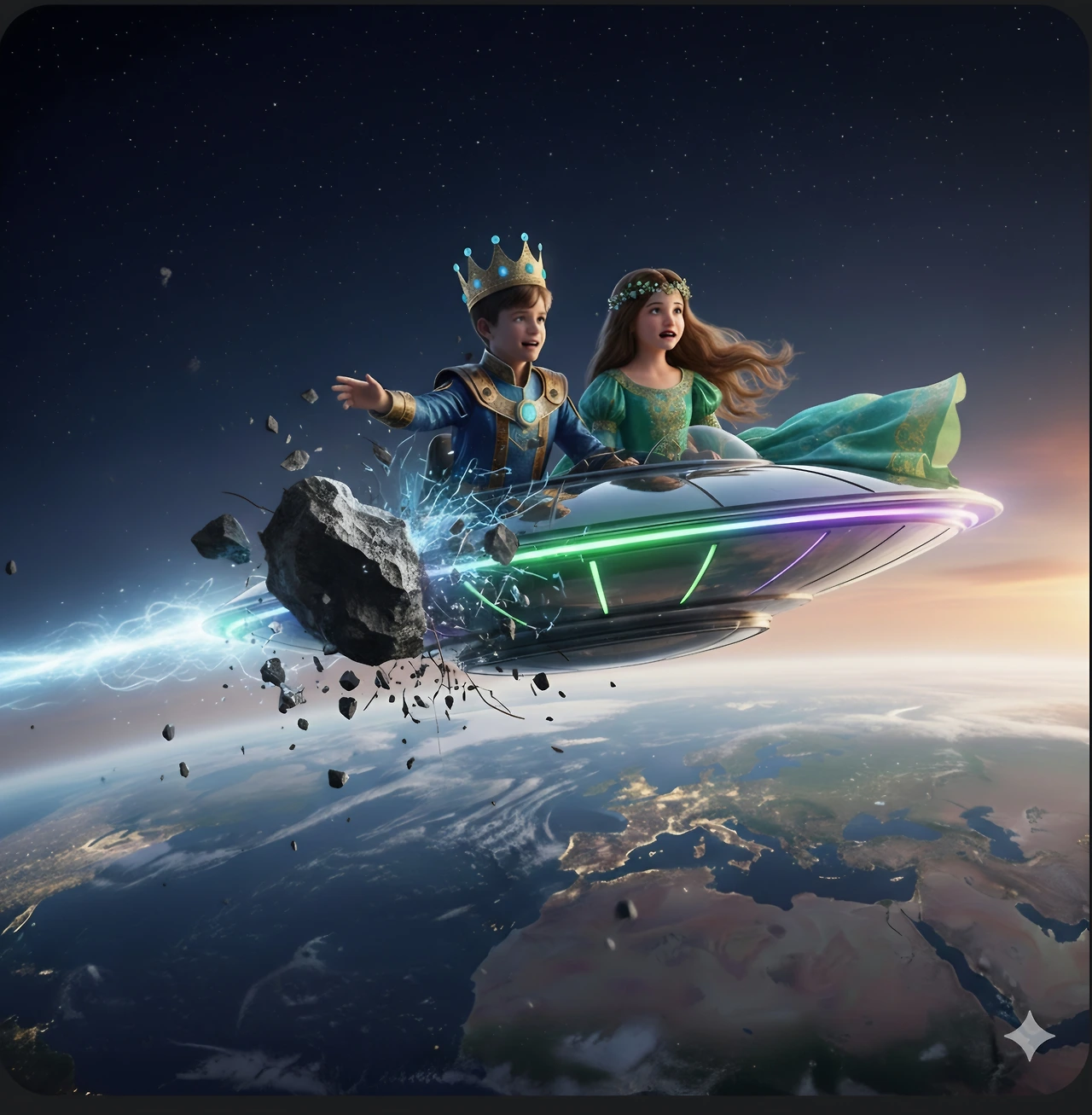 달나라공주는 우주왕자를 따라 우주탐사를 떠났어요.