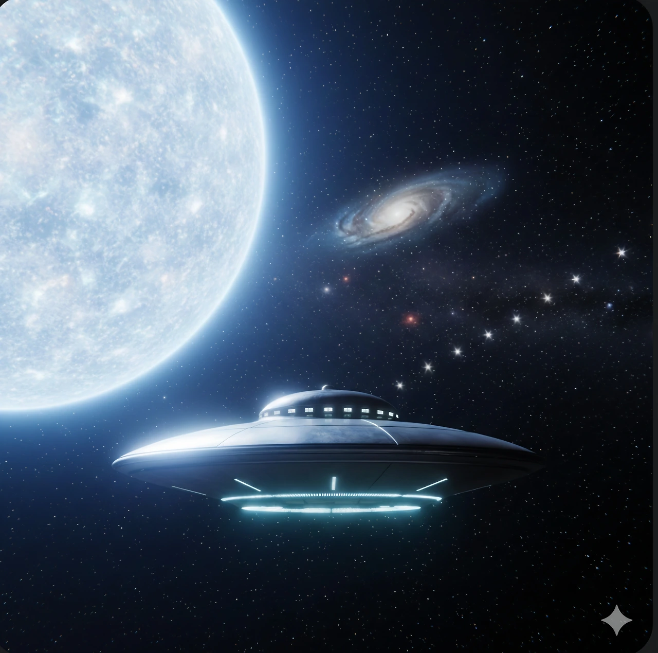 비행접시 한 대가 <상상의 별>을 향해 가고 있었어요.